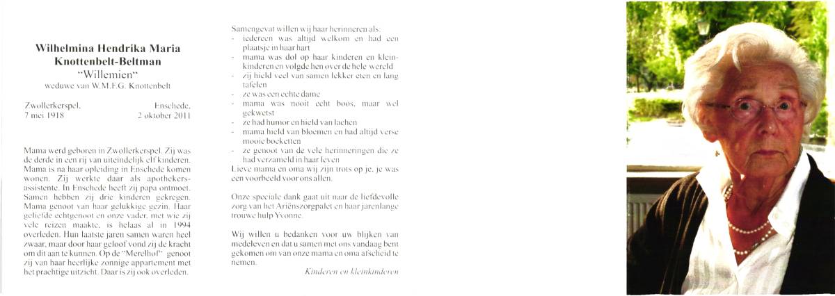 BEKKE, Anna Maria, geboren op 24-8-1904 te Enschede, overleden op 12-2-1992 te Enschede op 87-jarige leeftijd, gecremeerd op 17-2-1992 te Usselo.
