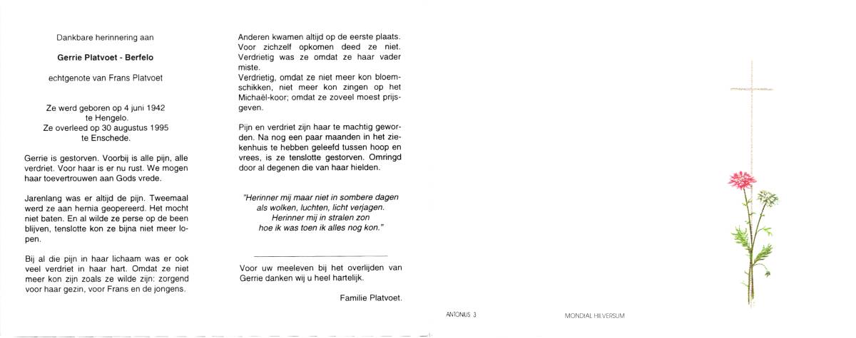 BERFELO, Gerrie, geboren op 4-6-1942 te Hengelo, overleden op 30-8-1995 te Enschede op 53-jarige leeftijd.