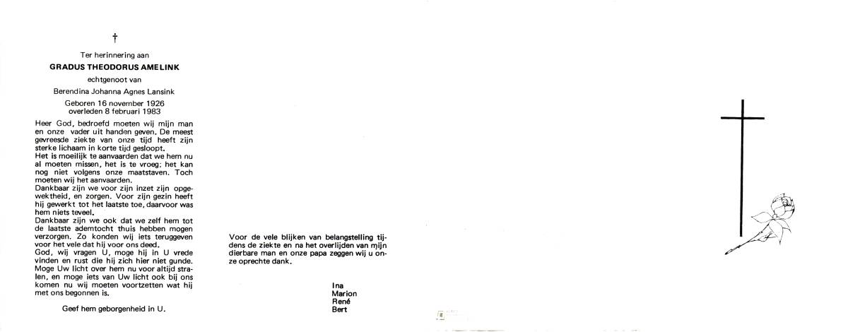 BERENDS, Gerhardus Johannes, geboren op 12-04-1895 te Tubbergen, overleden op 18-4-1978 te Losser op 83-jarige leeftijd, begraven op 22-4-1978 te Losser.