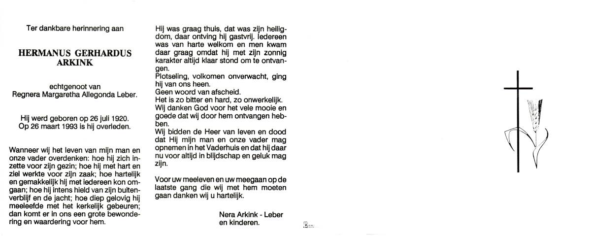 BARKEL, Hendrikus Hermanus, geboren op 29-5-1913 te Lonneker, overleden op 8-3-1983 te Enschede op 69-jarige leeftijd, gecremeerd op 11-3-1983 te Usselo (Gem. Enschede).