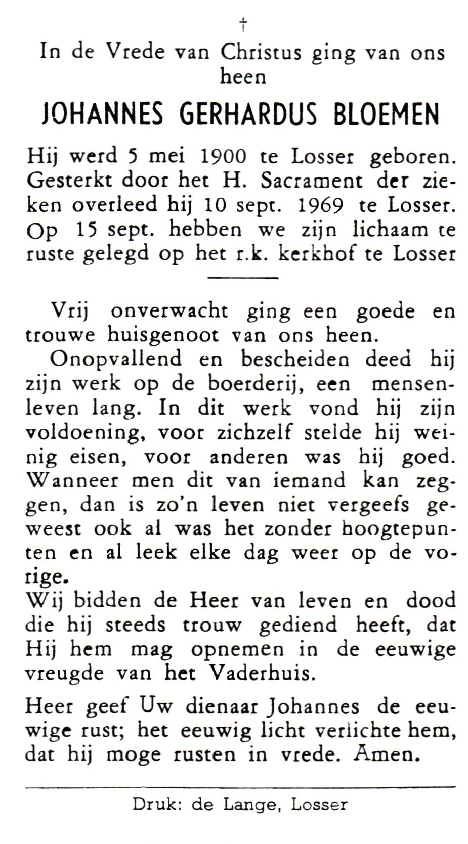 BLOEMEN, Bernardus Engelbertus, geboren op 22-05-1889 te Losser, overleden op 20-3-1945 te Gronau, Dld op 55-jarige leeftijd, begraven op 27-3-1945 te Losser.