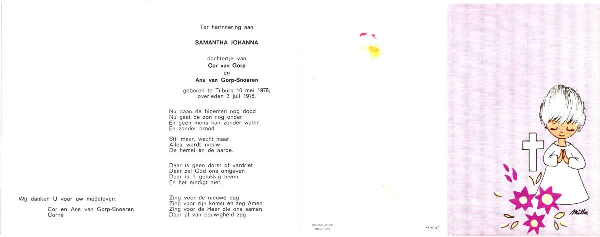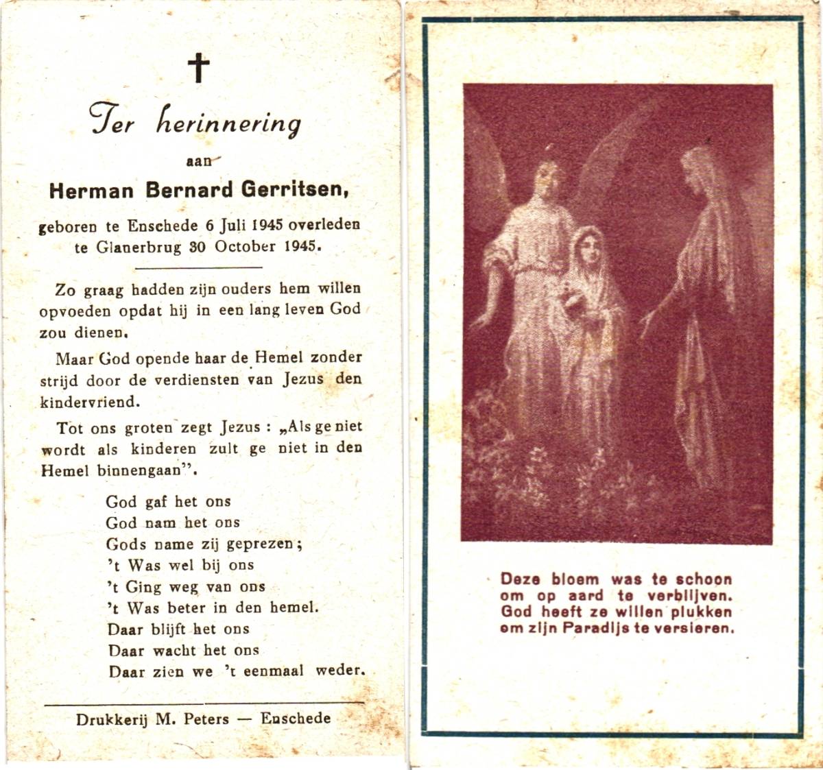 GERRITSEN, Herman Bernard, geboren op 6-7-1945 te Enschede, overleden op 30-10-1945 te Glanerbrug op 0-jarige leeftijd.
