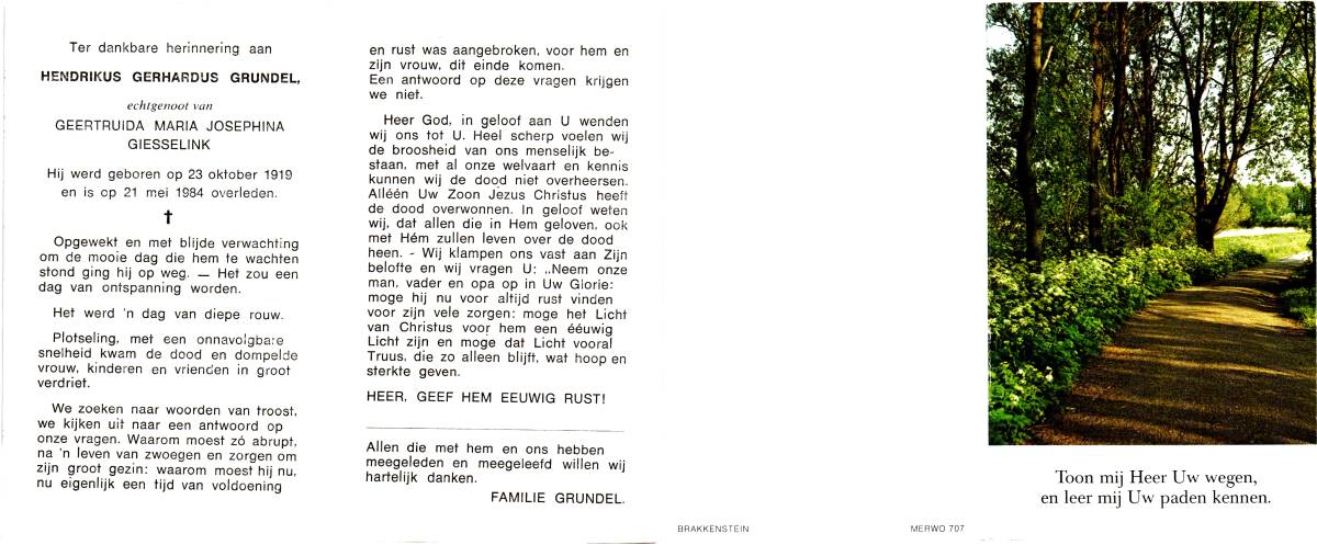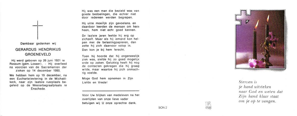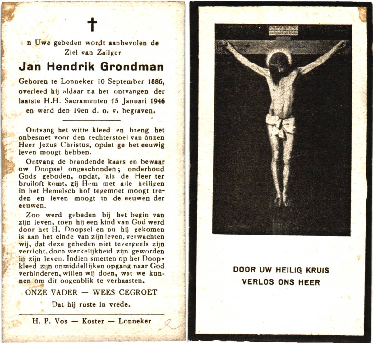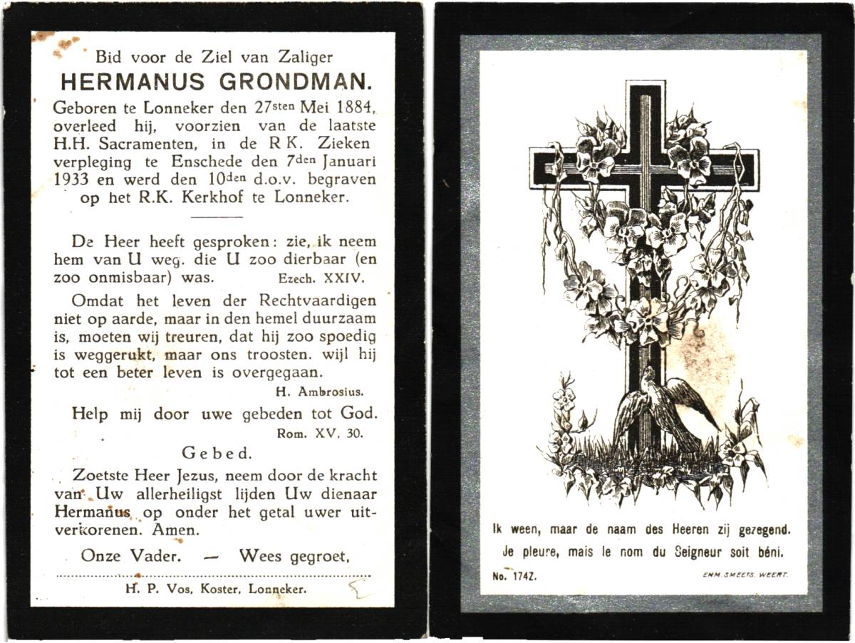 GRONDMAN, Gradus Johannes, geboren op 4-8-1918 te Lonneker, overleden op 29-10-1991 te Enschede op 73-jarige leeftijd, gecremeerd op 1-11-1991 te Usselo.