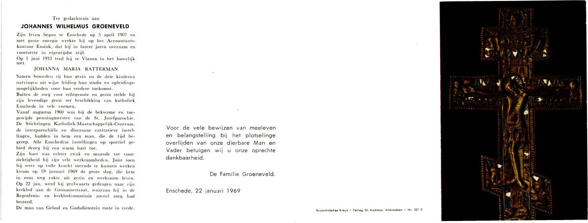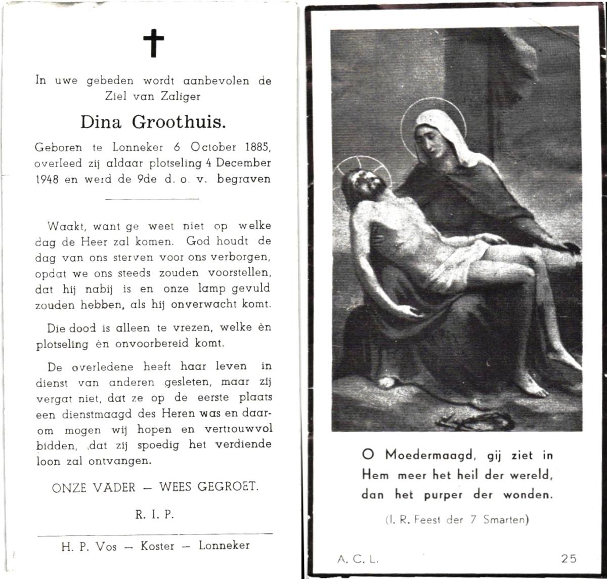 GROOTHUIS , Heinrich Aloysius Jozef, geboren op 29-12-1905 te Reutum, overleden op 2-2-1976 te Almelo op 70-jarige leeftijd, begraven op 6-2-1976 te Almelo.