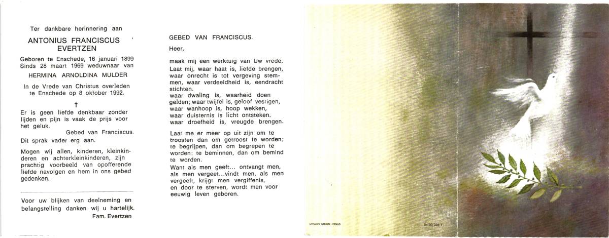 EVERS, Gerrit Franciscus Joseph, geboren op 20-3-1933 te Delden, Ambt, overleden op 11-4-1988 te Haaksbergen op 55-jarige leeftijd, gecremeerd op 14-4-1988 te Usselo.