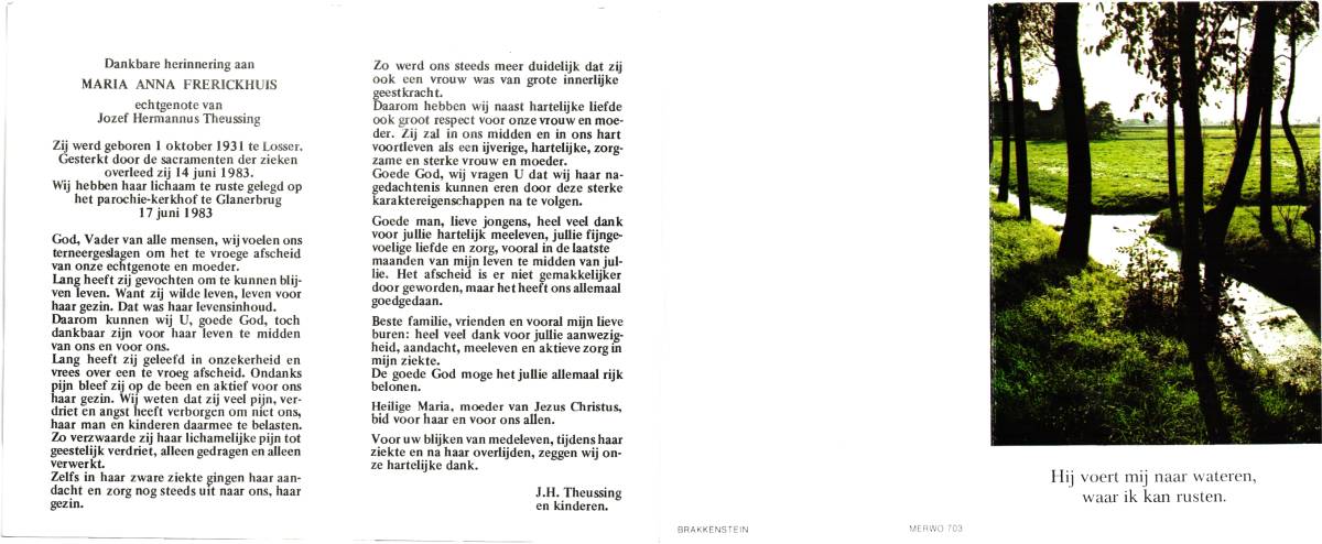GEUSENDAM, Johanna Wilhelmina Theresia, geboren op 12-1-1927 te Rijssen, overleden op 17-4-1983 te Enschede op 56-jarige leeftijd, gecremeerd te Usselo.