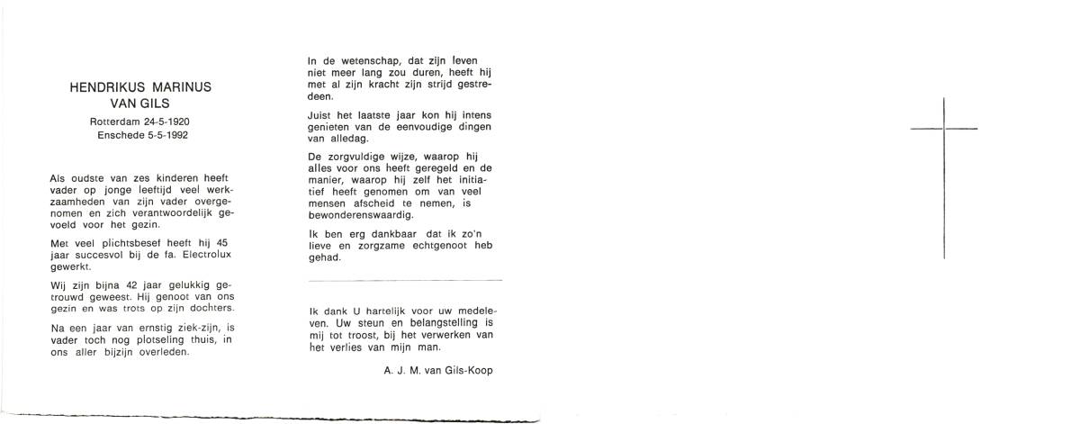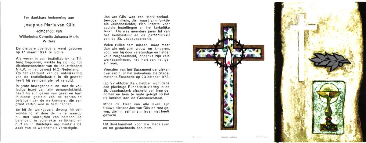 GILS, van, Josephus Maria, geboren op 17-3-1924 te Goirle, overleden op 23-10-1973 te Enschede, ziekenhuis op 49-jarige leeftijd, begraven op 27-10-1973 te Enschede.