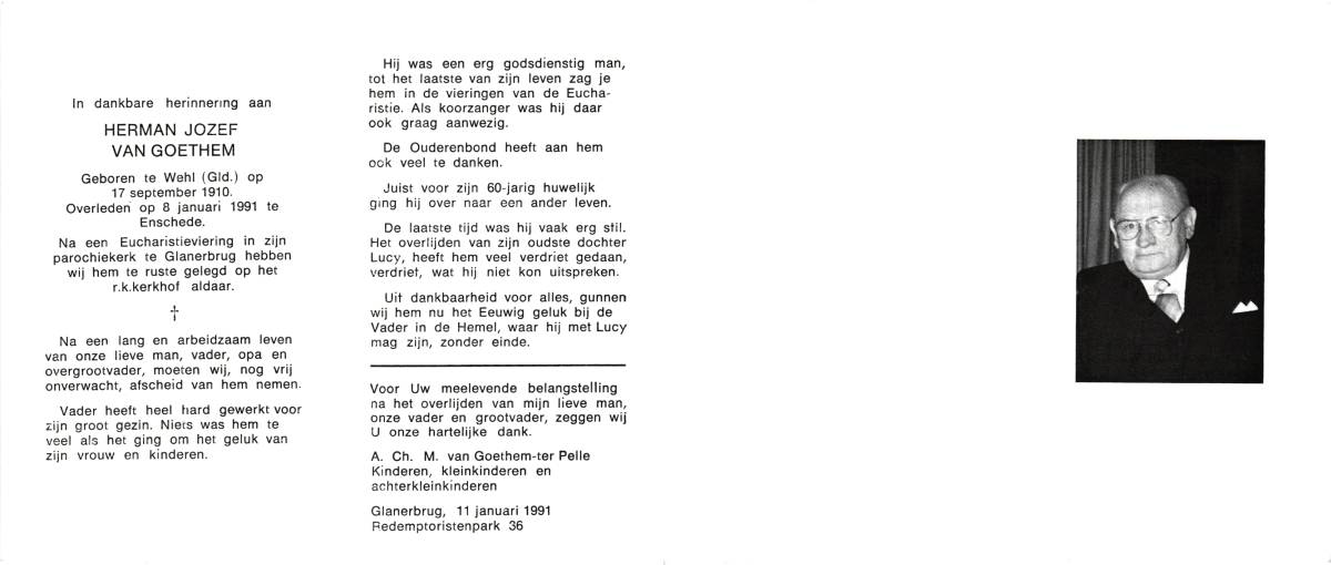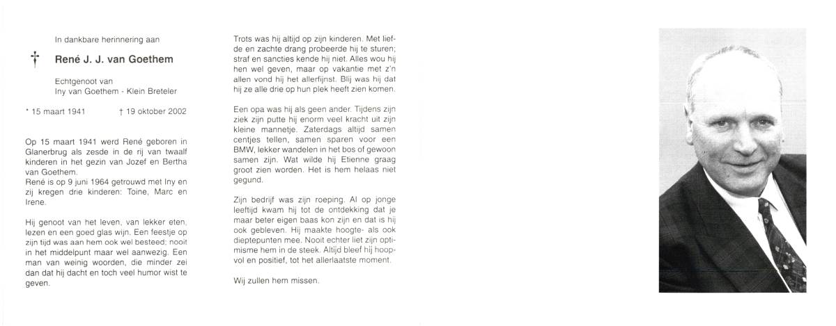 GOETHEM, van, René J.J., geboren op 15-3-1941 te Glanerbrug, overleden op 19-10-2002 op 61-jarige leeftijd.