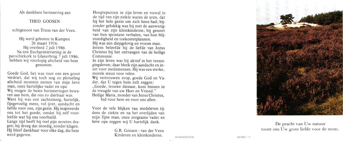 GOOSSEN, Theo, geboren op 26-3-1916 te Kampen, overleden op 2-7-1986 op 70-jarige leeftijd, begraven op 7-7-1986 te Glanerbrug.