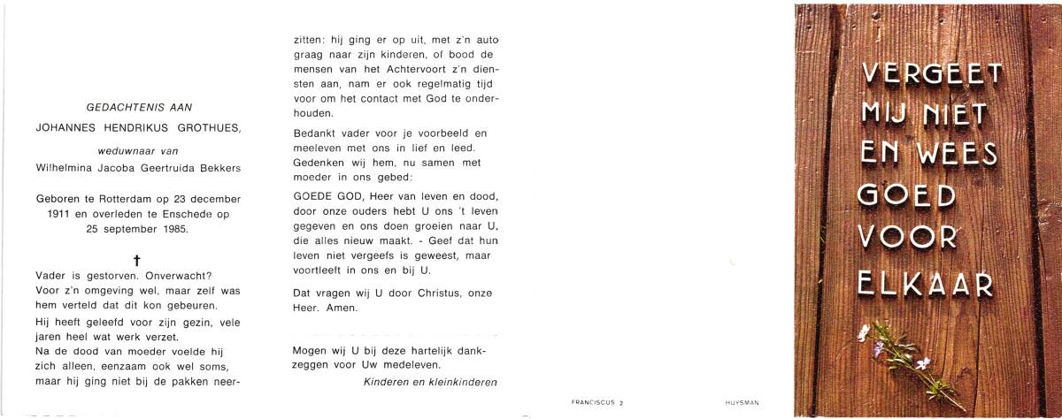 GROTHUES, Johannes Hendrikus, geboren op 23-12-1911 te Rotterdam, overleden op 25-9-1985 te Enschede op 73-jarige leeftijd.