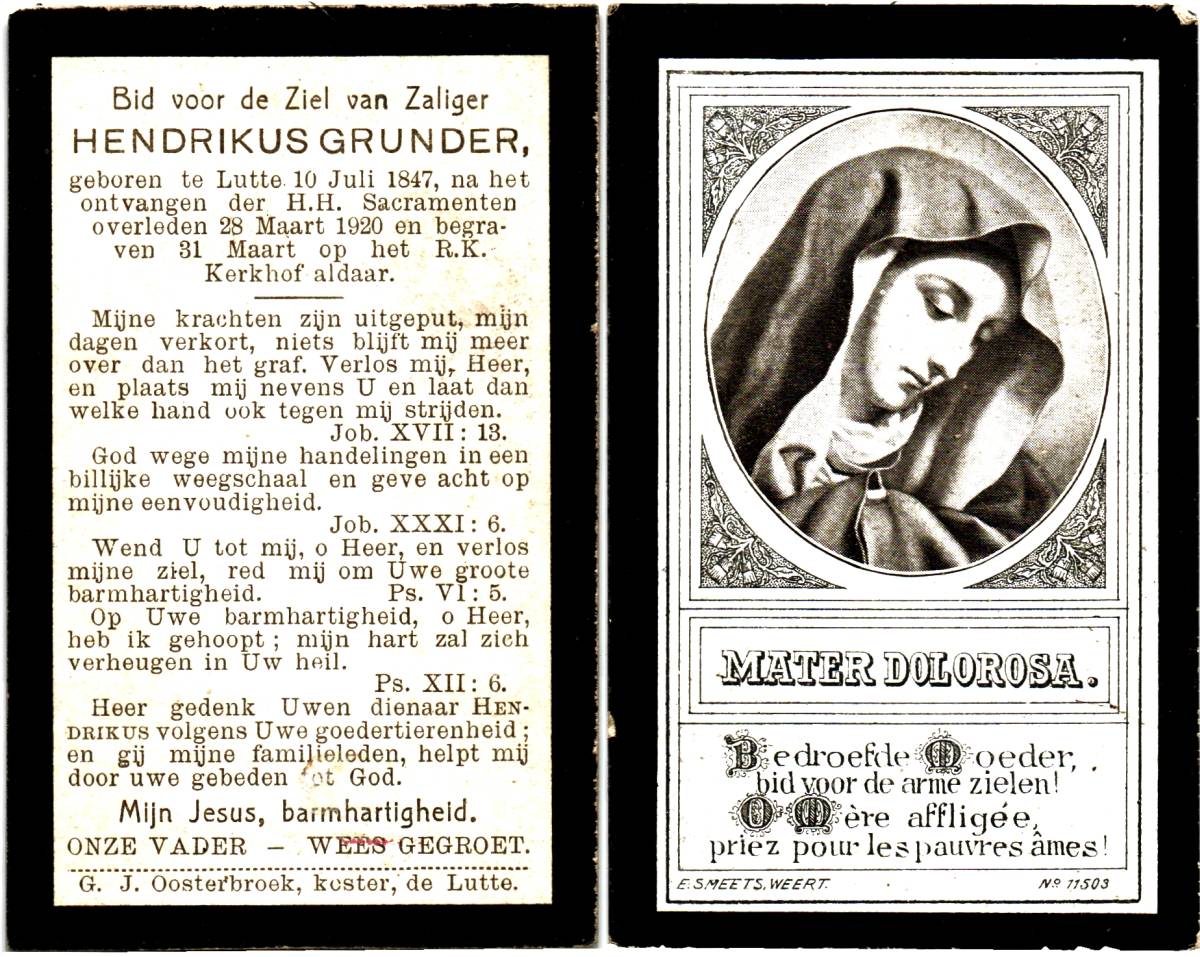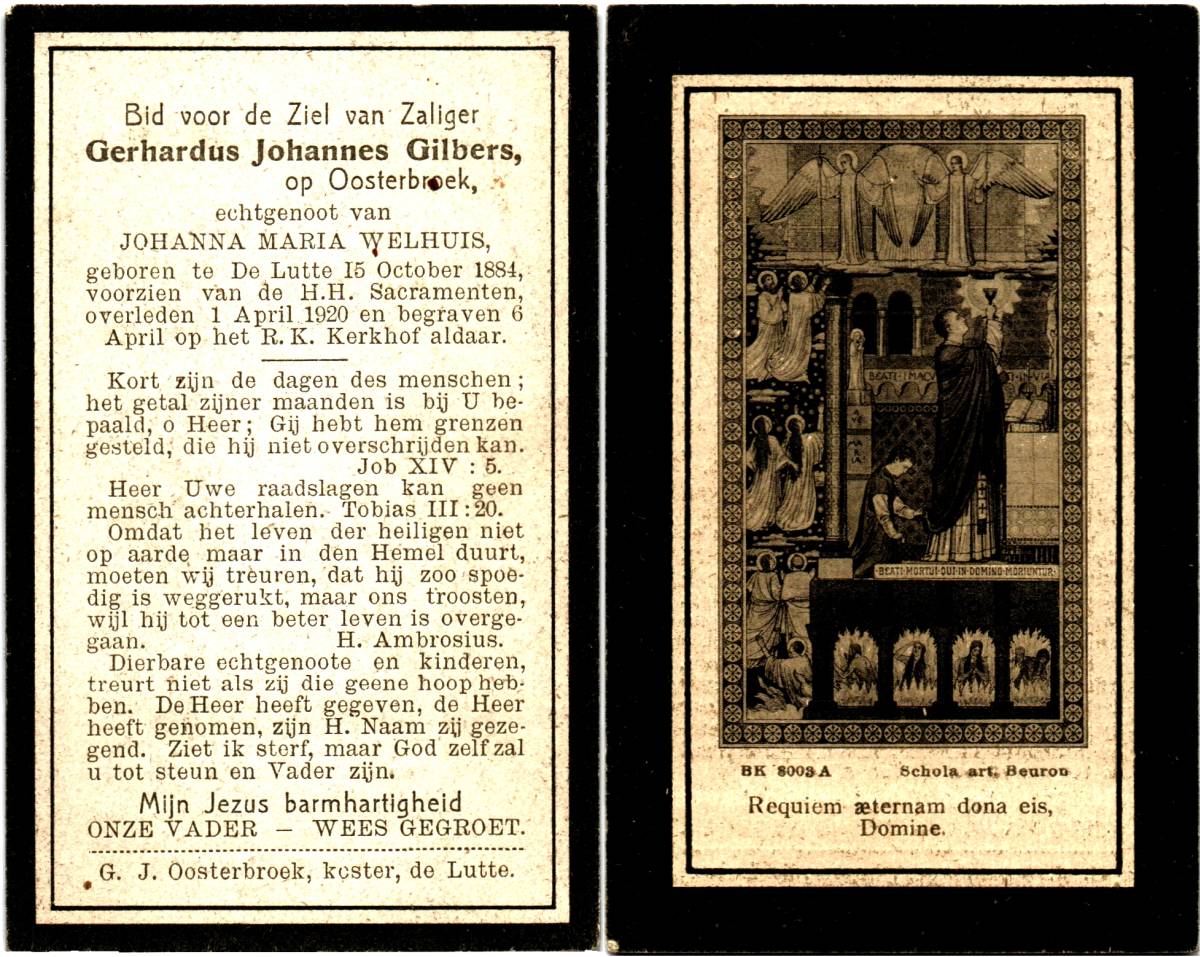 GILBERS, Gerhardus Johannes, geboren op 15-10-1884 te De Lutte, overleden op 1-4-1920 te De Lutte op 35-jarige leeftijd, begraven op 6-4-1920 te De Lutte.