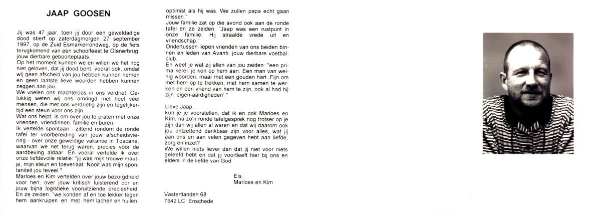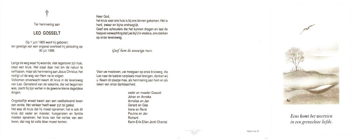 GOSSELT, Leo, geboren op 1-6-1965, overleden op 30-7-1989 op 24-jarige leeftijd.
