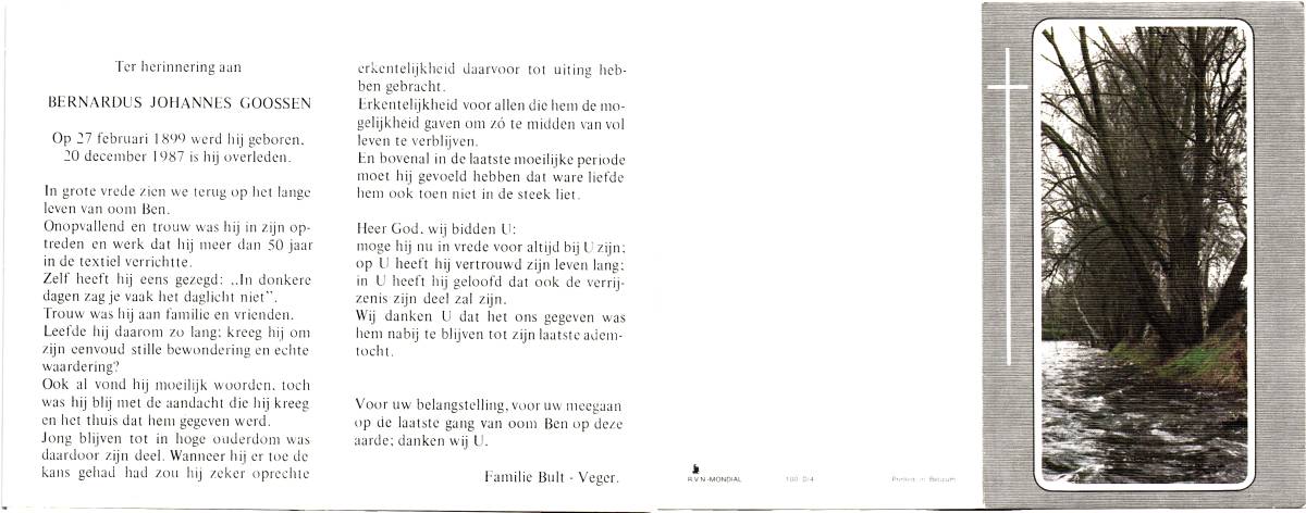 GOOSSENS, Johannes Wilhelmus, geboren op 17-12-1901 te Lievelde, overleden op 28-9-1977 te Enschede op 75-jarige leeftijd, gecremeerd op 3-10-1977 te Usselo.
