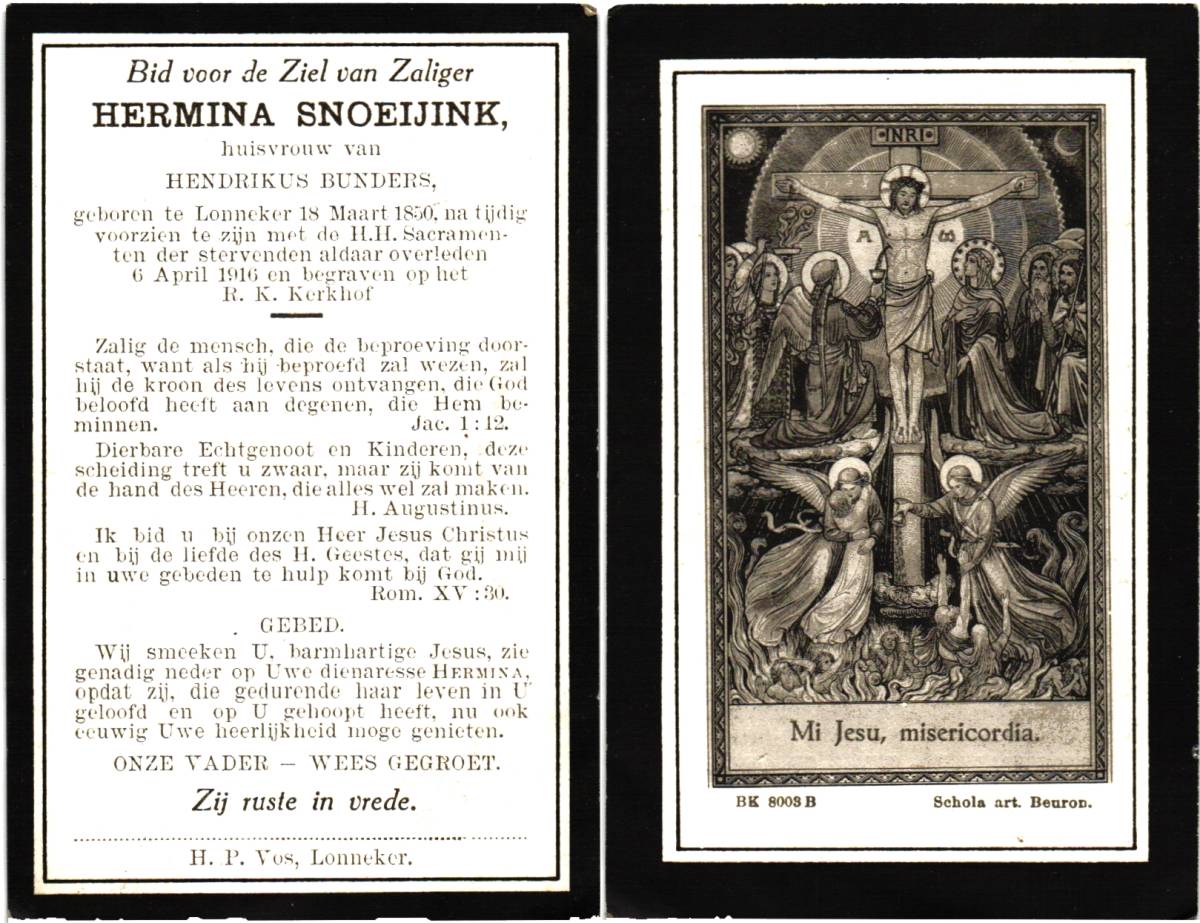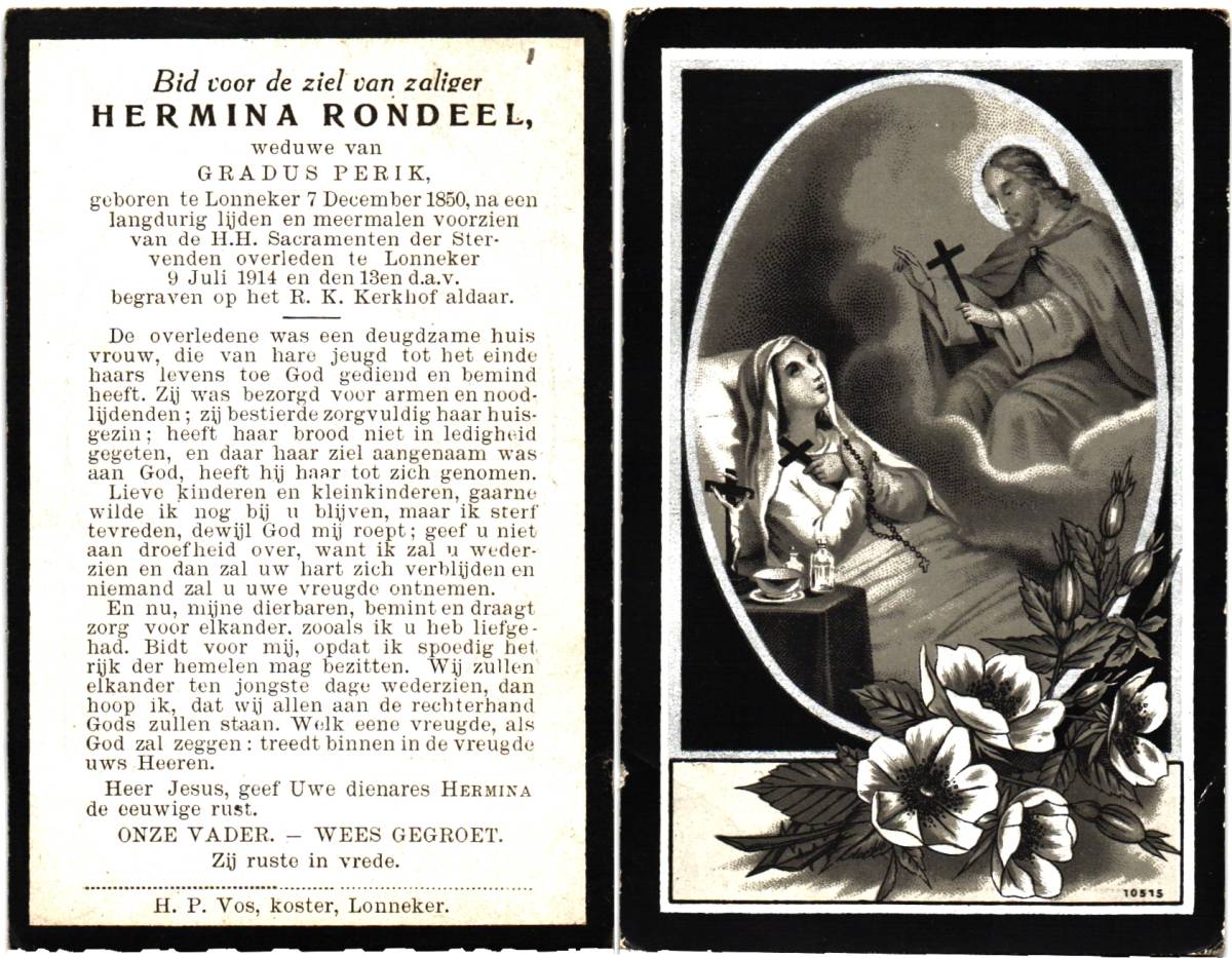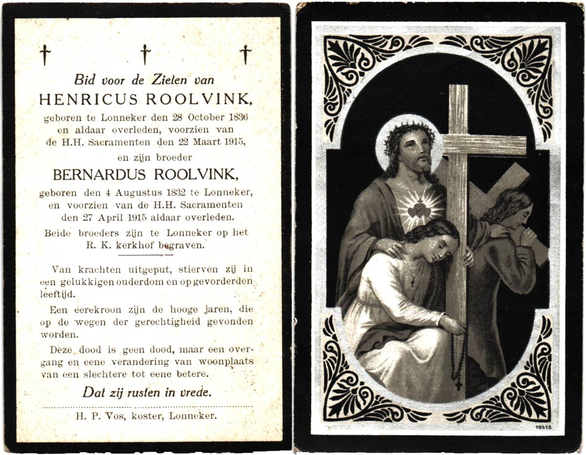 ROOLVINK, Bernardus, geboren op 04-08-1832 te Lonneker, overleden op 27-4-1915 te Lonneker op 82-jarige leeftijd, begraven te Lonneker.