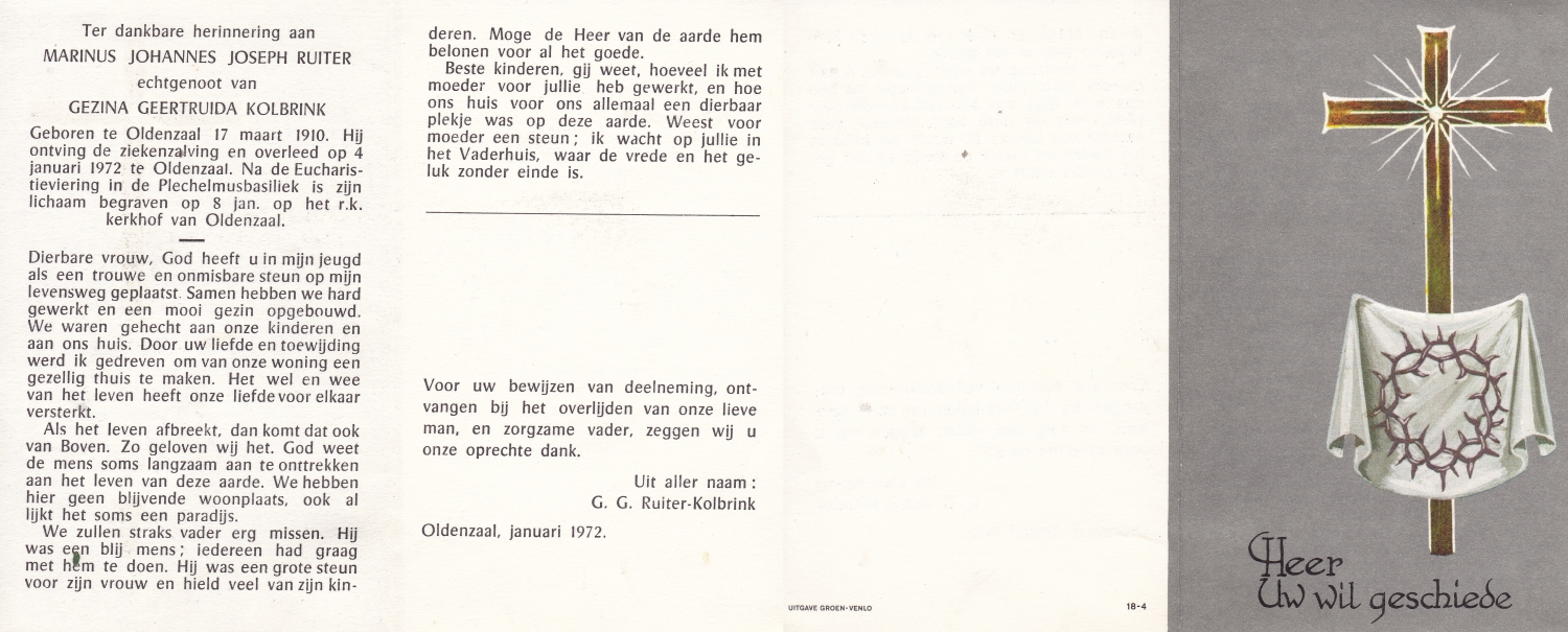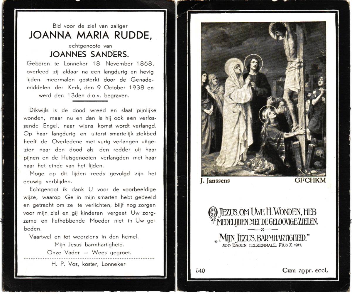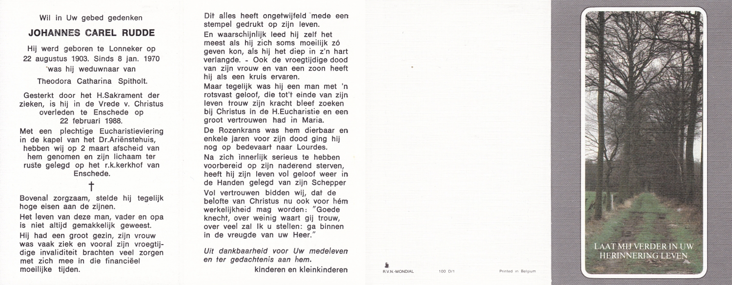 RÜDING , Joannes Cornelius, geboren op 12-12-1871 te Groningen, overleden op 17-1-1952 te De Lutte op 80-jarige leeftijd, begraven op 22-1-1952 te De Lutte.