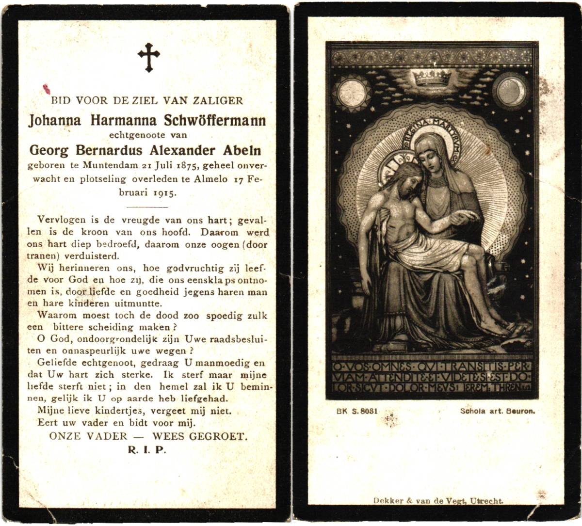SCHWOFFERMANN, Johanna Hermanna, geboren op 21-07-1875 te Muntendam, overleden op 17-2-1915 te Almelo op 39-jarige leeftijd.