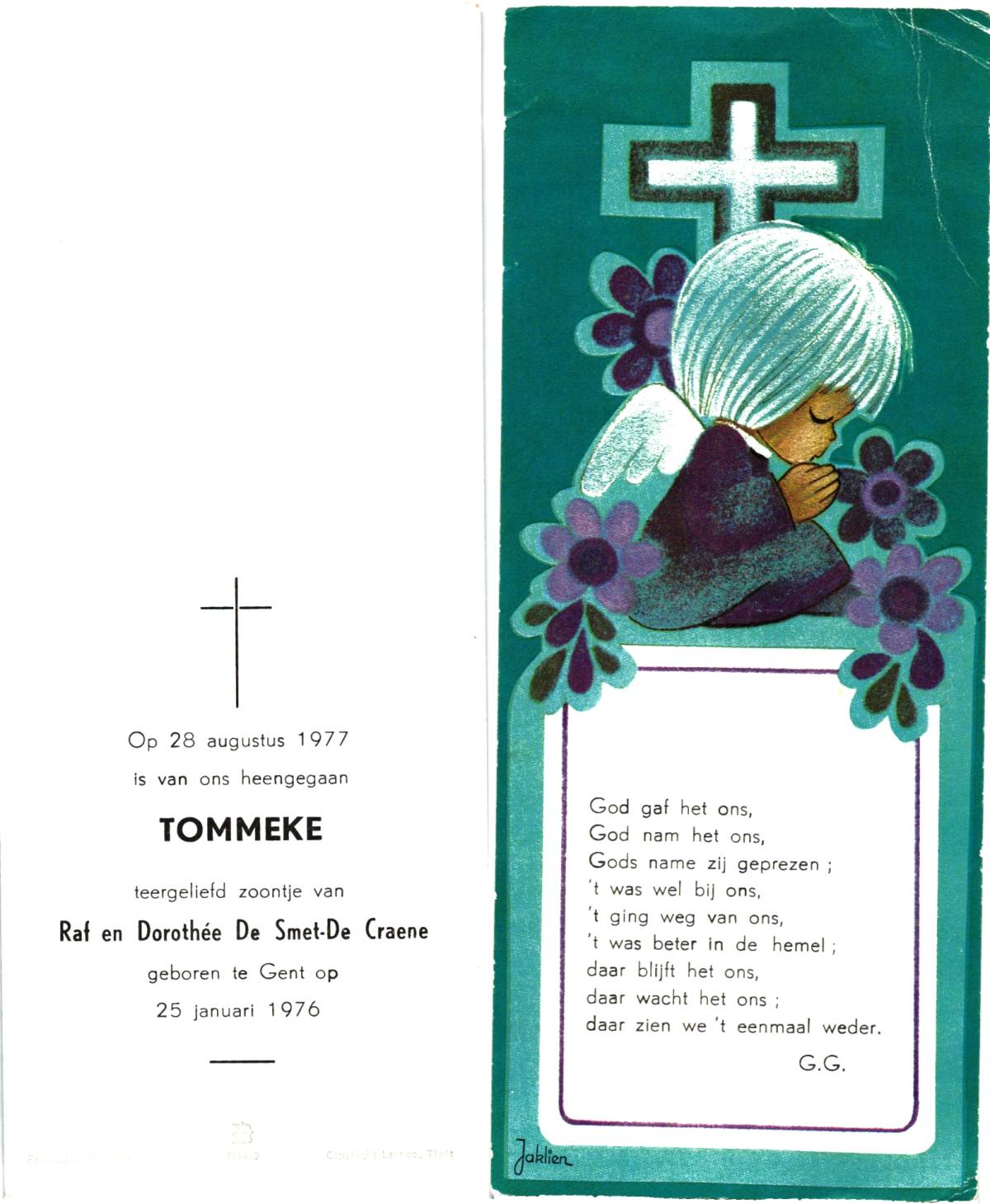 SLAG, Martijn, geboren op 14-5-1974 te Losser, overleden op 25-4-1978 te Losser op 3-jarige leeftijd, begraven te Losser.