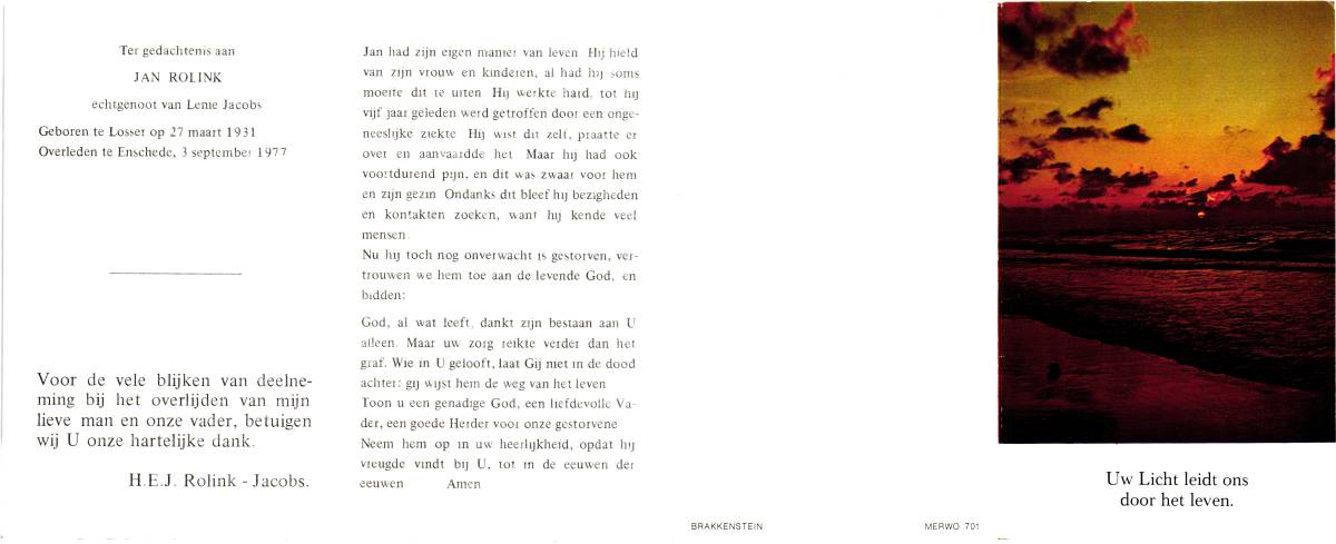 ROOLVINK, Eugenius G.M., geboren op 07-06-1898 te Oldenzaal, overleden op 5-5-1978 te Almelo op 79-jarige leeftijd.