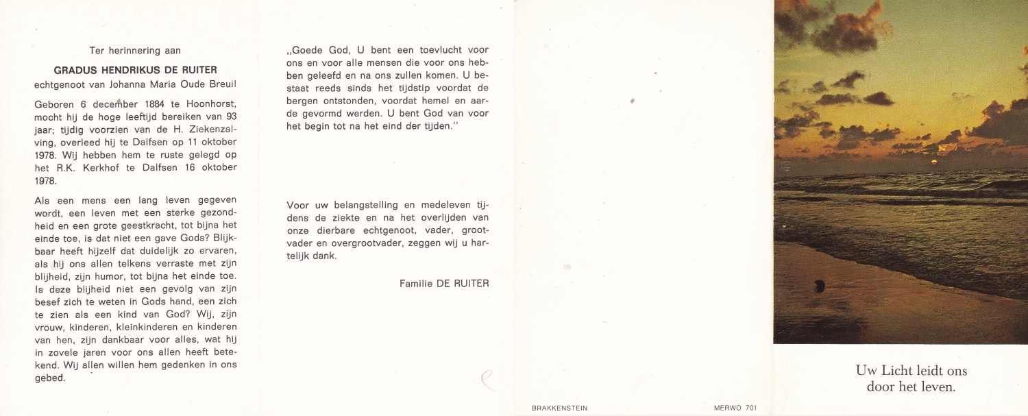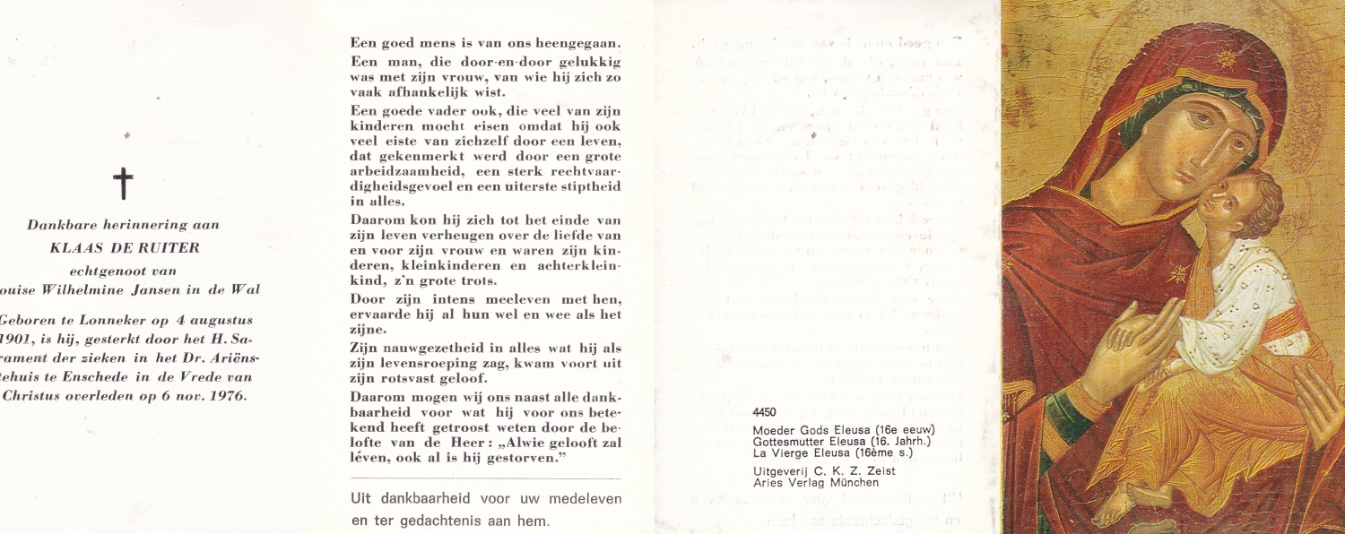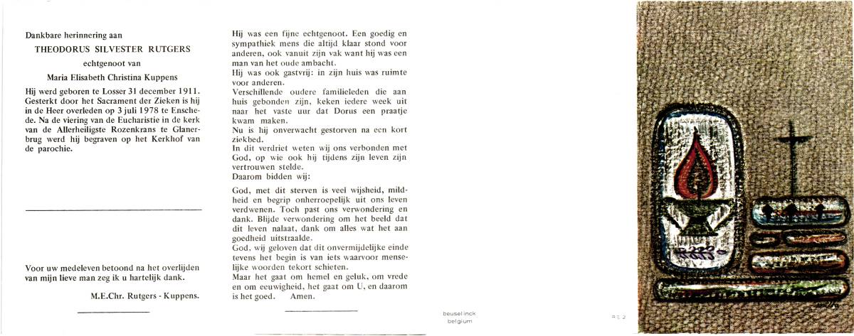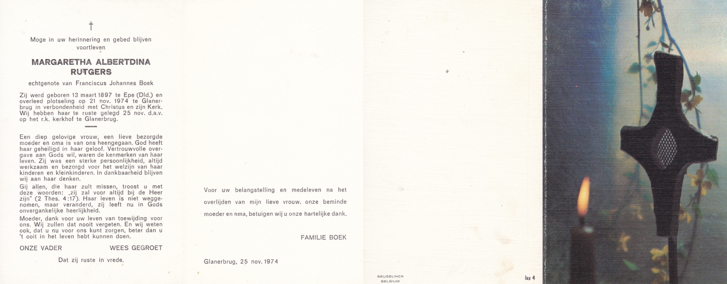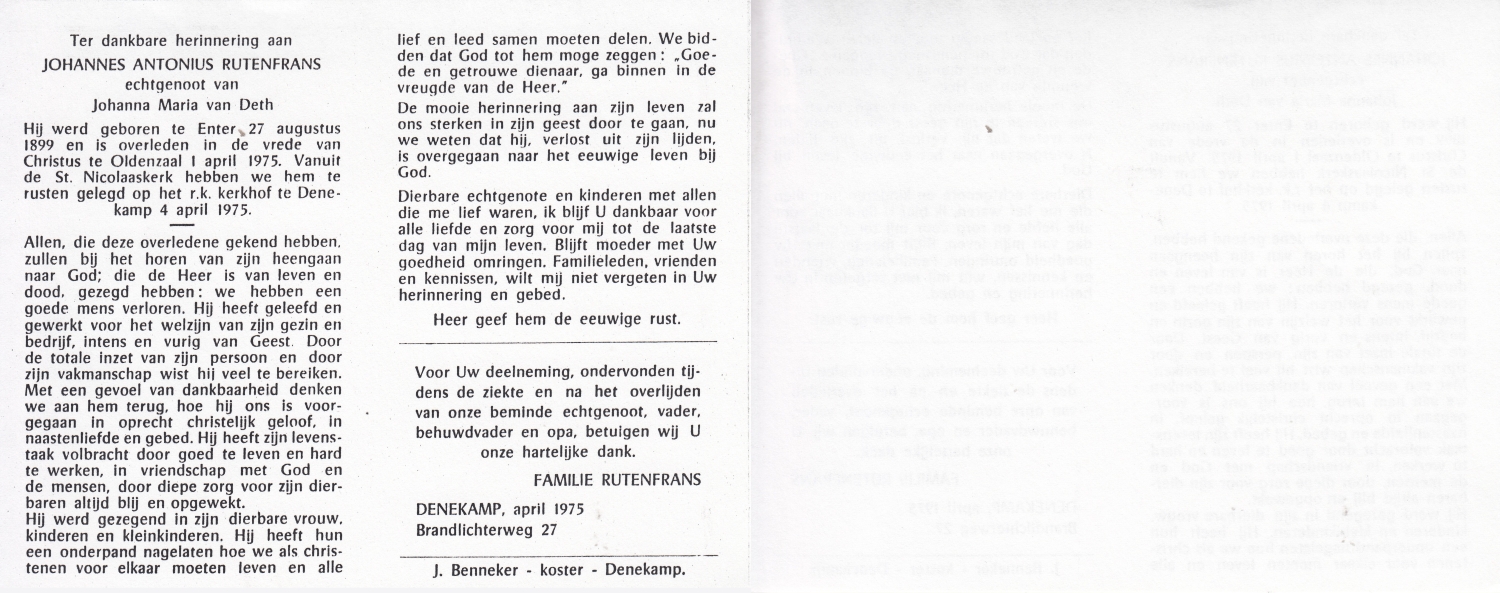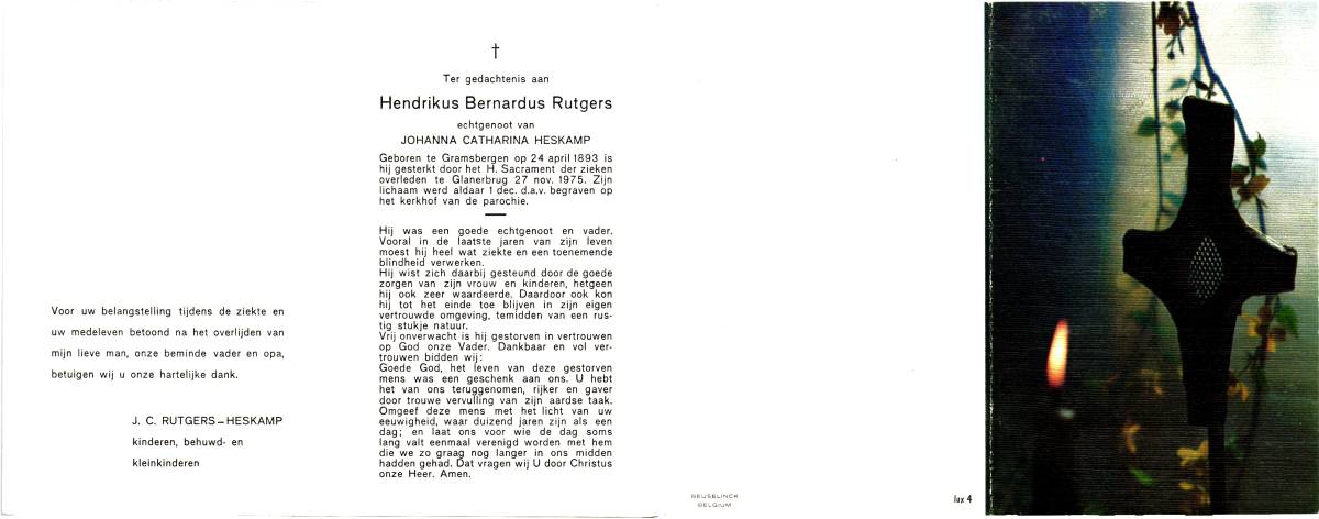 RUTGERS, Hendrikus Bernardus, geboren op 24-04-1893 te Gramsbergen, overleden op 27-11-1975 te Glanerbrug op 82-jarige leeftijd, begraven op 1-12-1975 te Glanerbrug.
