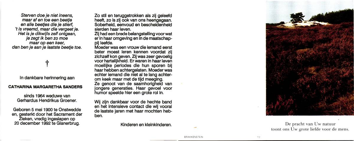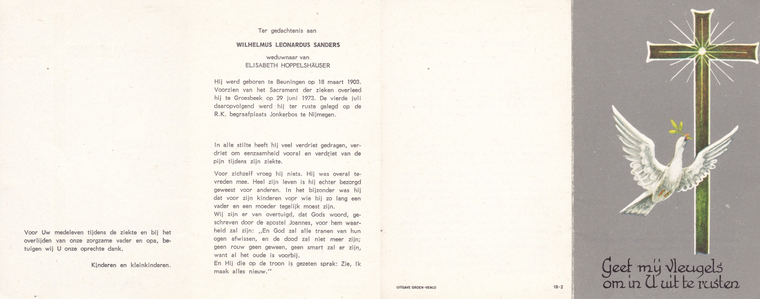 SANDERINK, Hendrikus Hermanus, geboren op 10-11-1908 te Vasse, overleden op 30-8-2000 te Beuningen op 91-jarige leeftijd, begraven op 4-9-2000 te Beuningen.