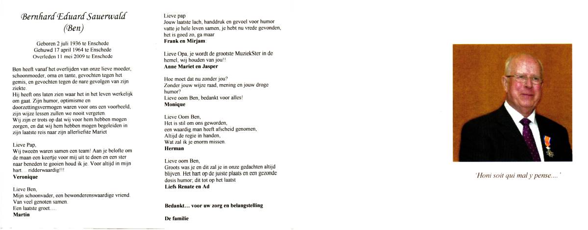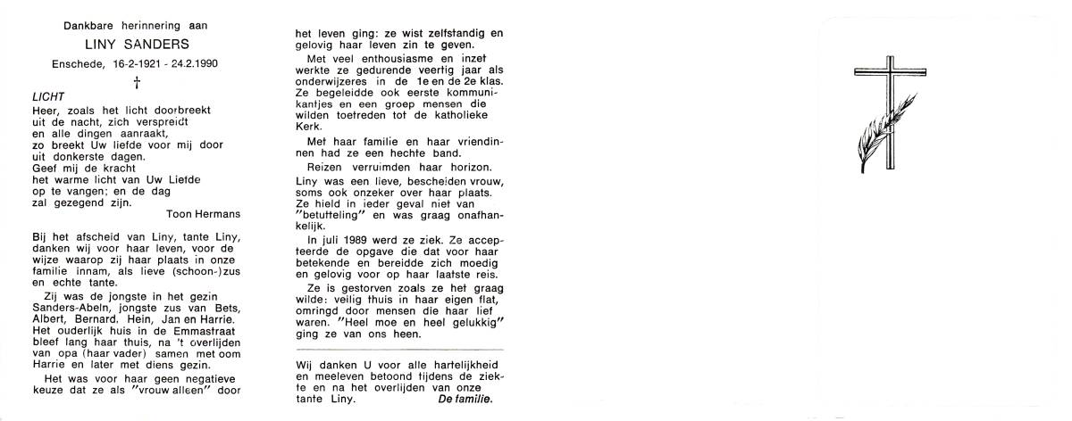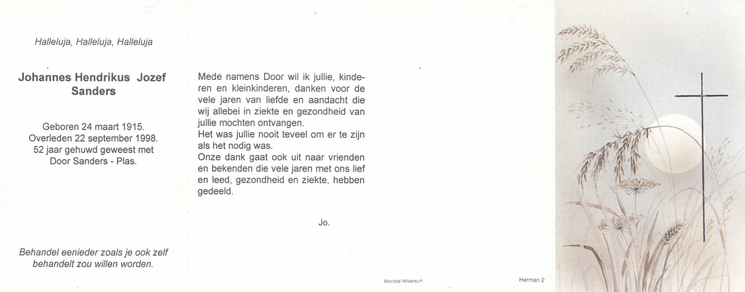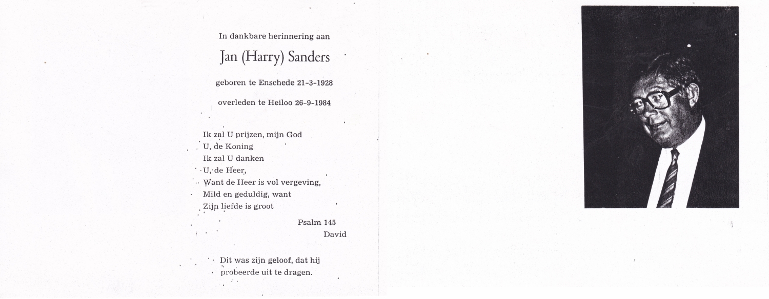 SANDERS, Jan, geboren op 17-6-1923 te Enschede, overleden op 6-11-2002 te Hengelo op 79-jarige leeftijd.
