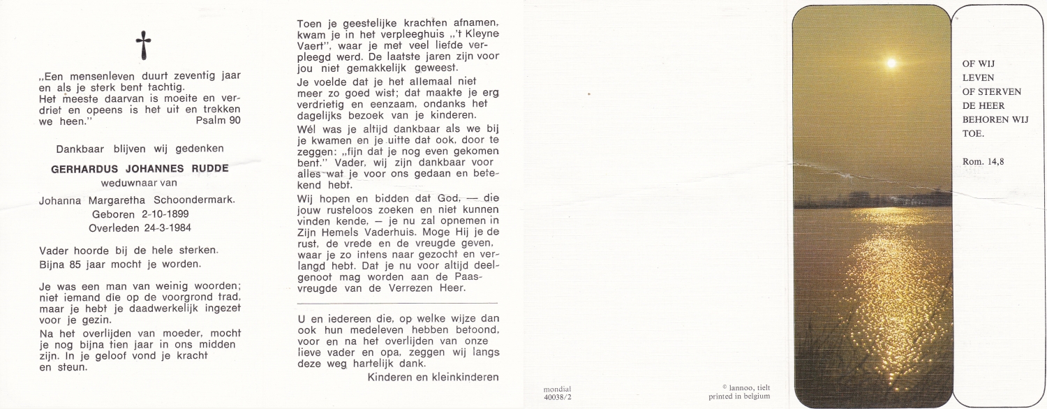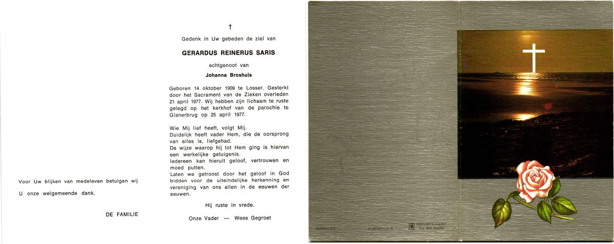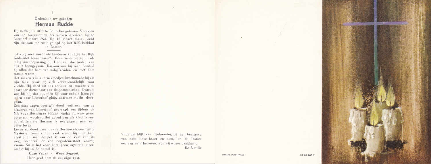 SMUDDE, Gerardus Johannes, geboren op 17-09-1890 te Losser, overleden op 8-5-1969 te Losser op 78-jarige leeftijd, begraven op 12-5-1969 te Losser.