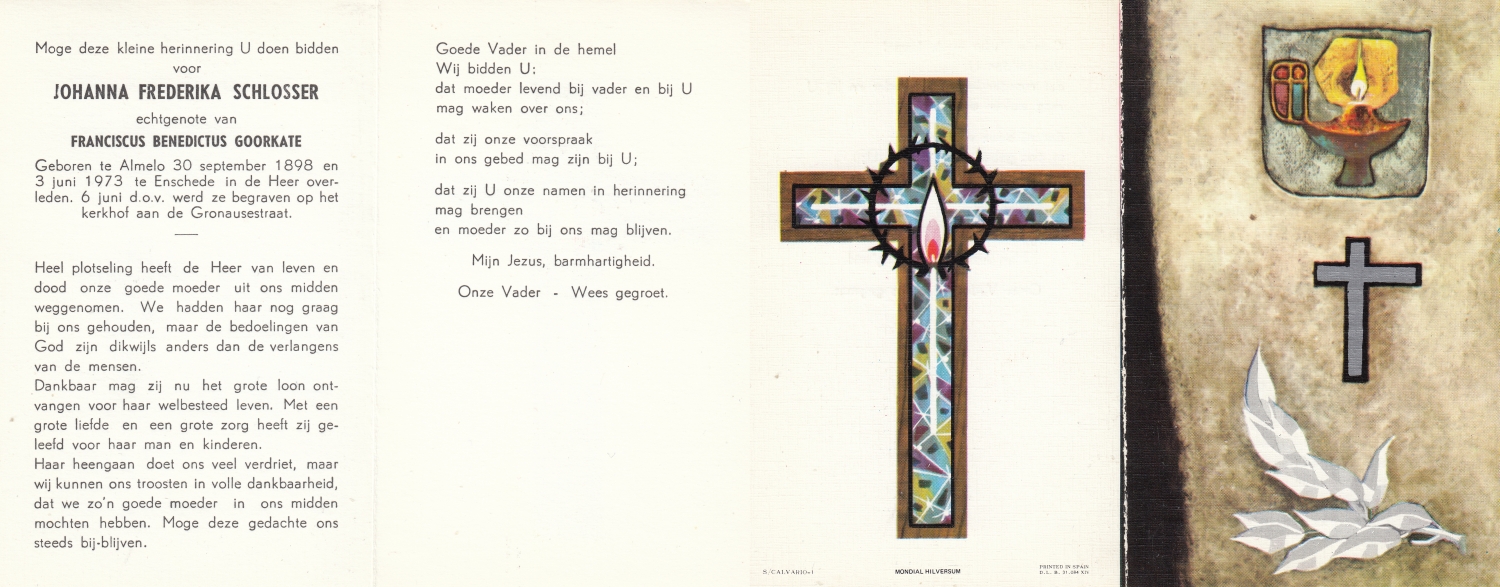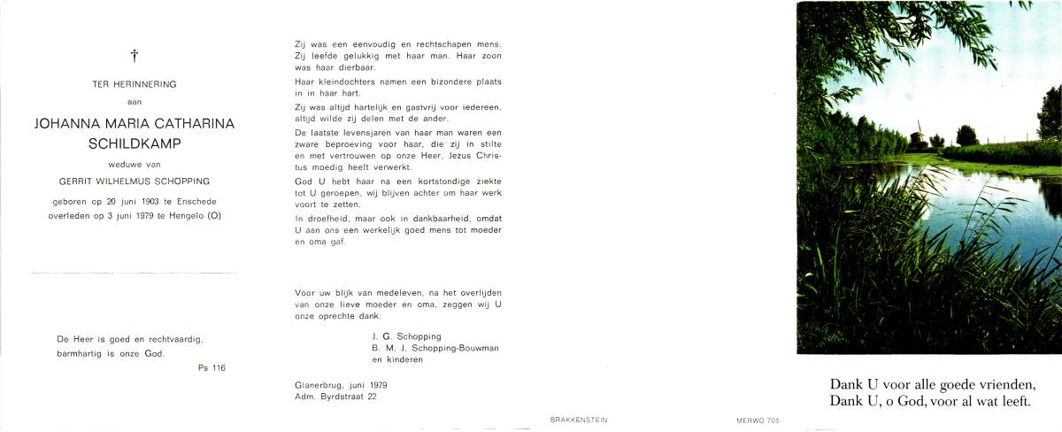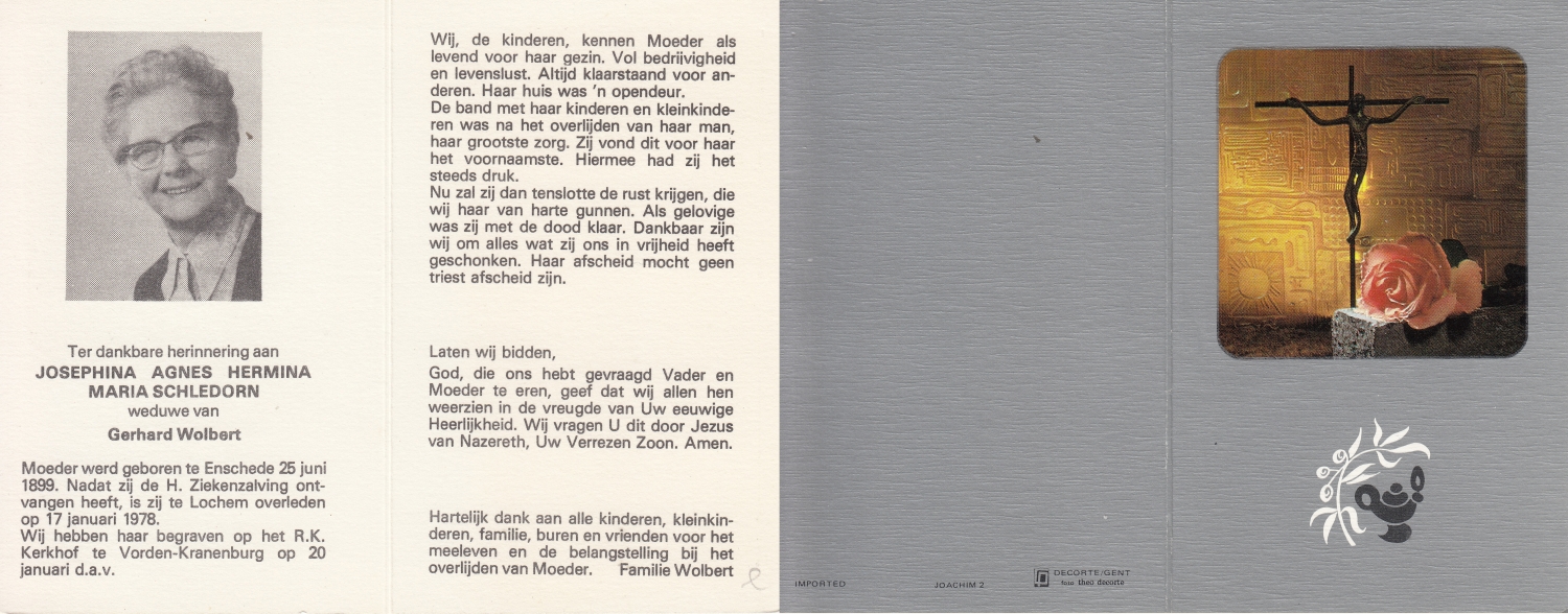 SCHOPPING, Johanna Grada, geboren op 01-08-1895 te Oldenzaal, overleden op 20-7-1978 te Hellendoorn op 82-jarige leeftijd, begraven op 24-7-1978 te Enschede.