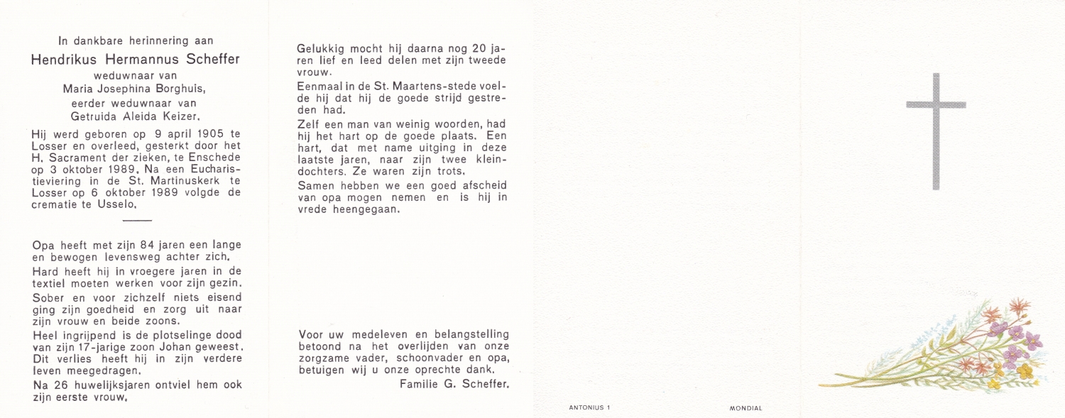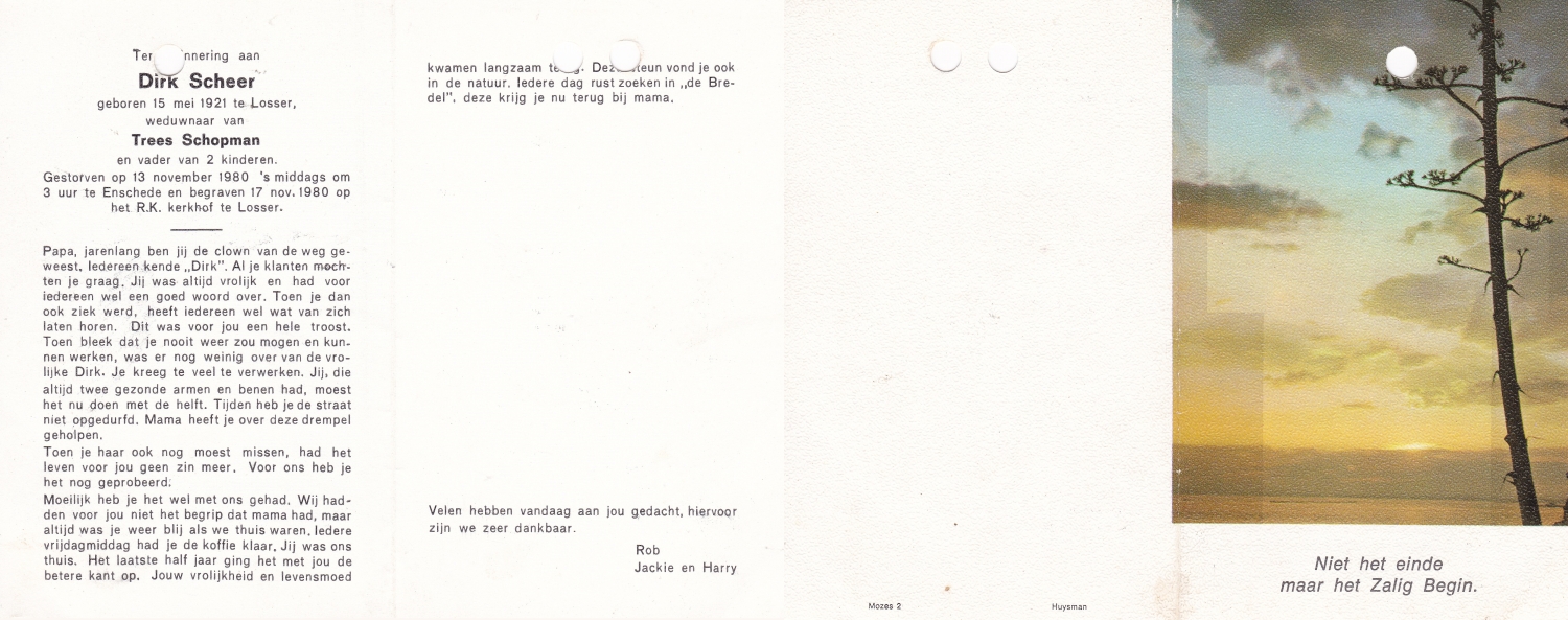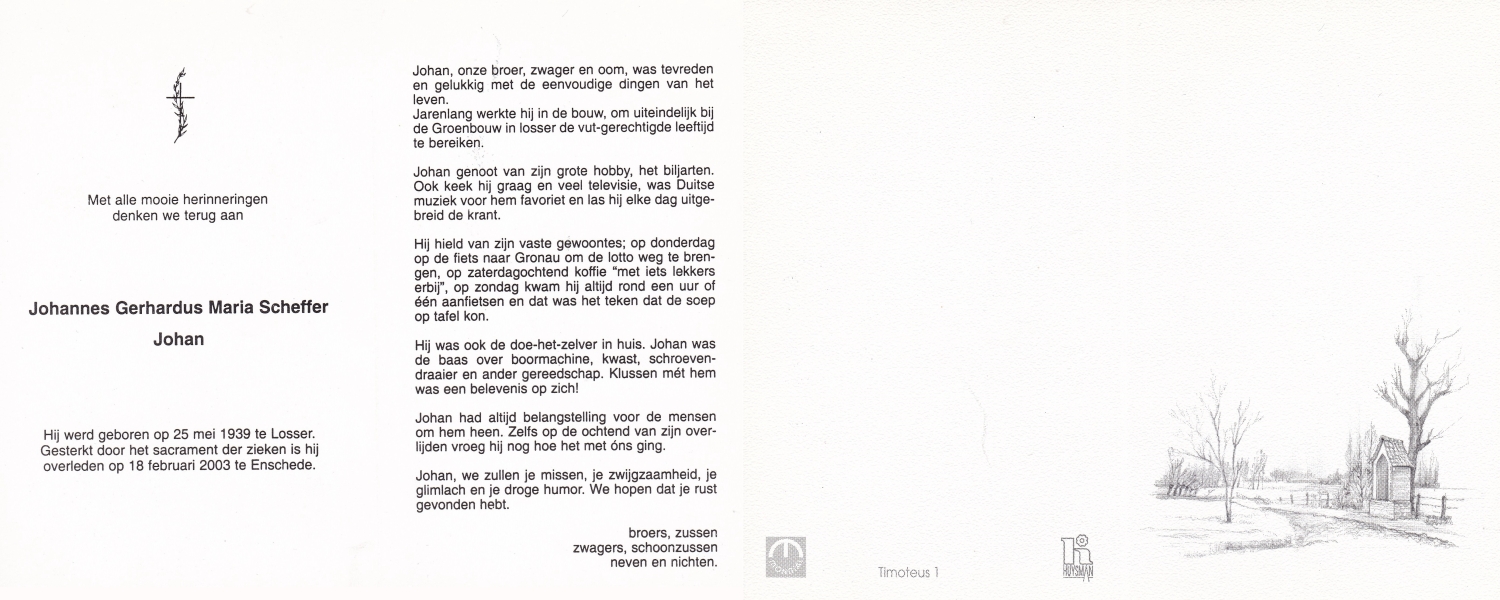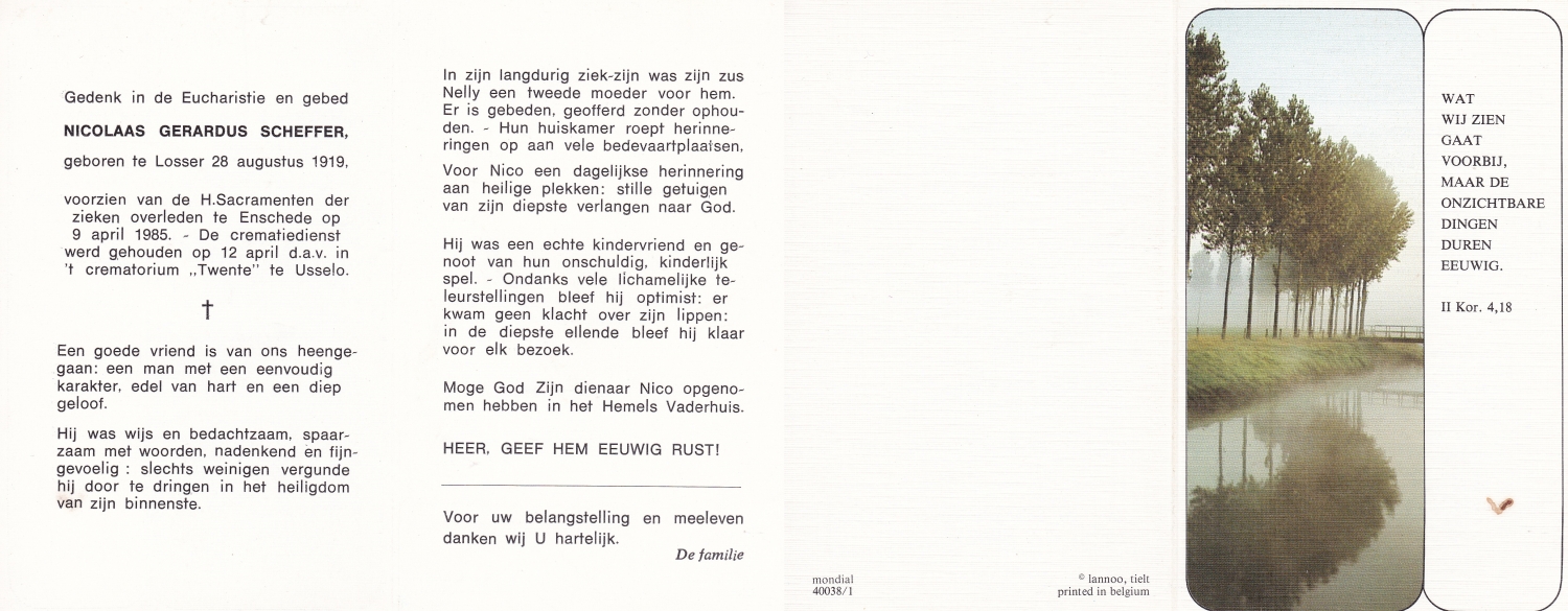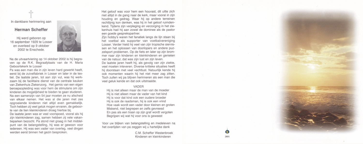 SCHEFFER, Bernardus Martinus, geboren op 8-7-1932 te Losser, overleden op 10-1-1985 te Enschede op 52-jarige leeftijd, begraven op 15-1-1985 te Overdinkel.