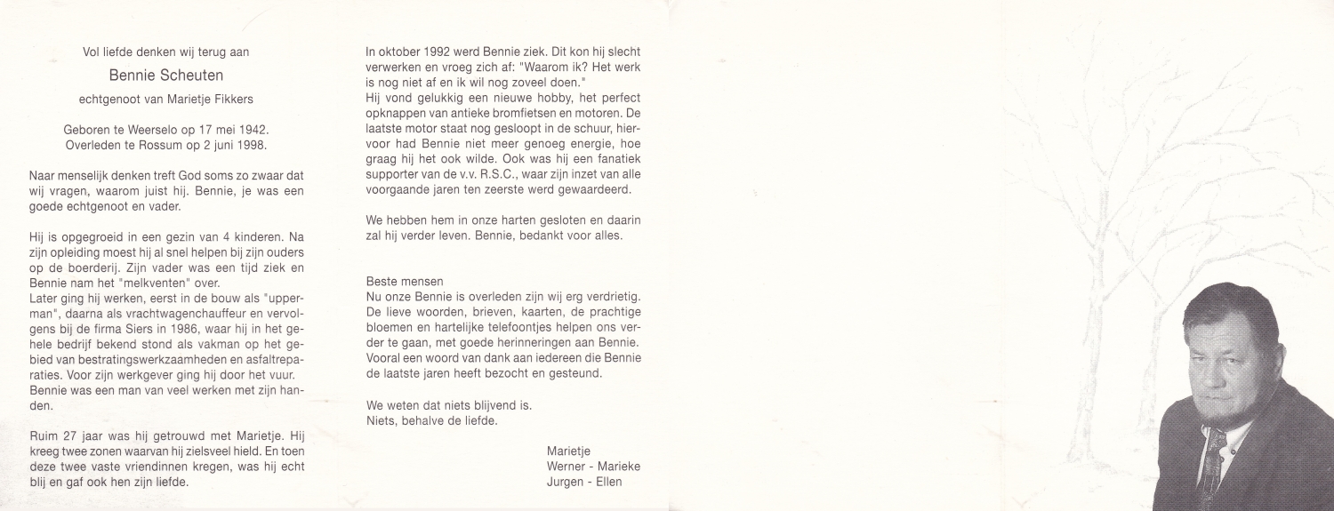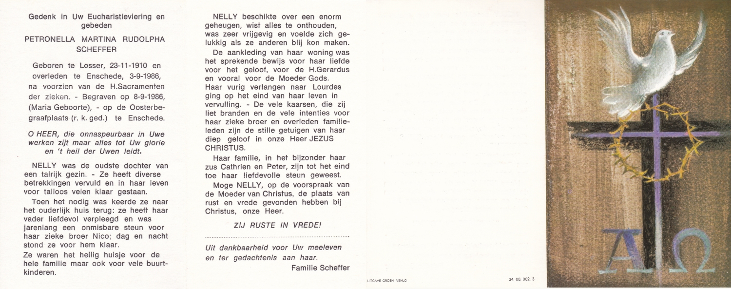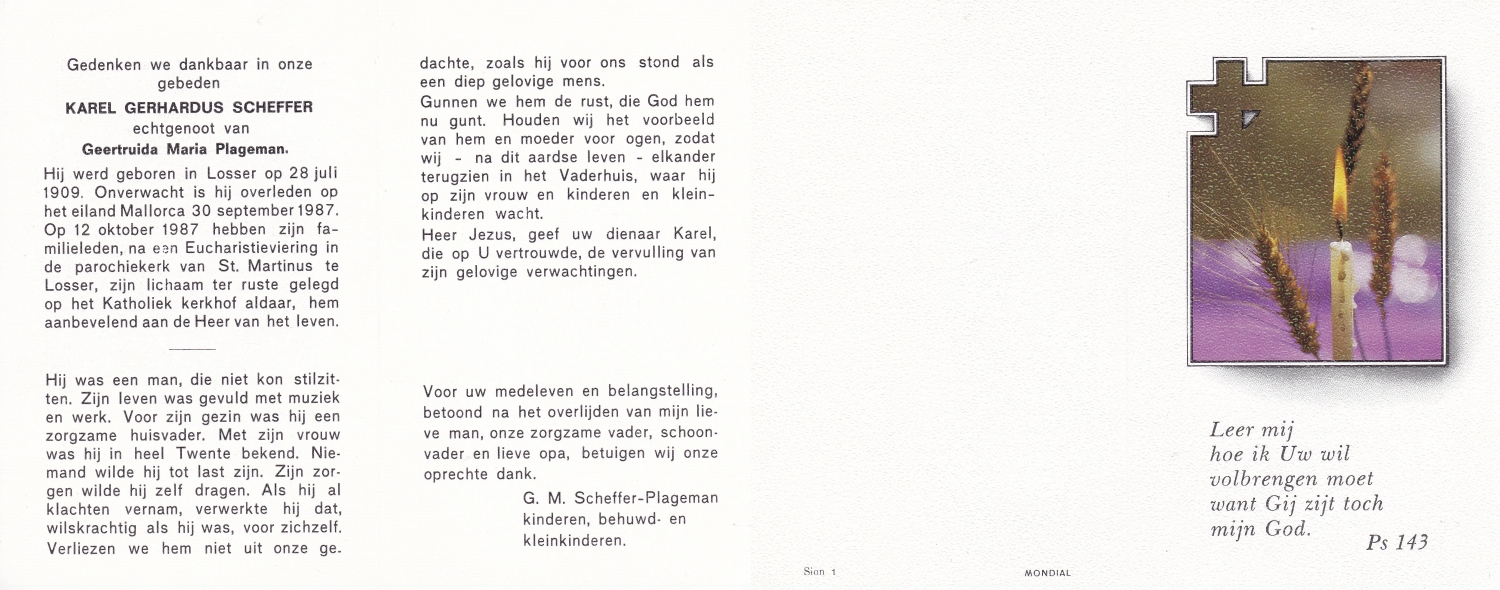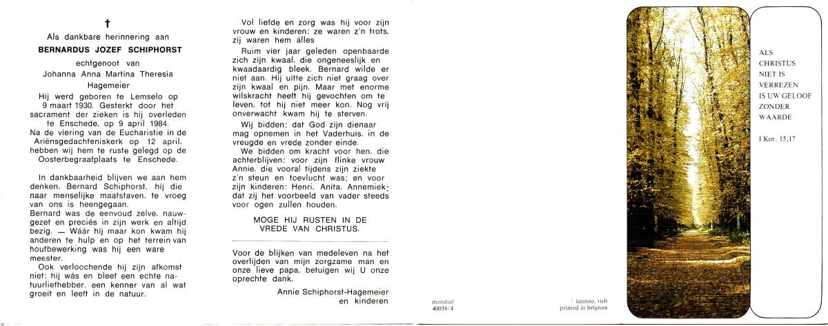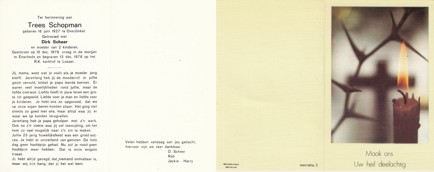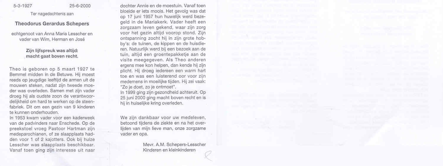 SCHEFFER, Bernardus Martinus, geboren op 8-7-1932 te Losser, overleden op 10-1-1985 te Enschede op 52-jarige leeftijd, begraven op 15-1-1985 te Overdinkel.