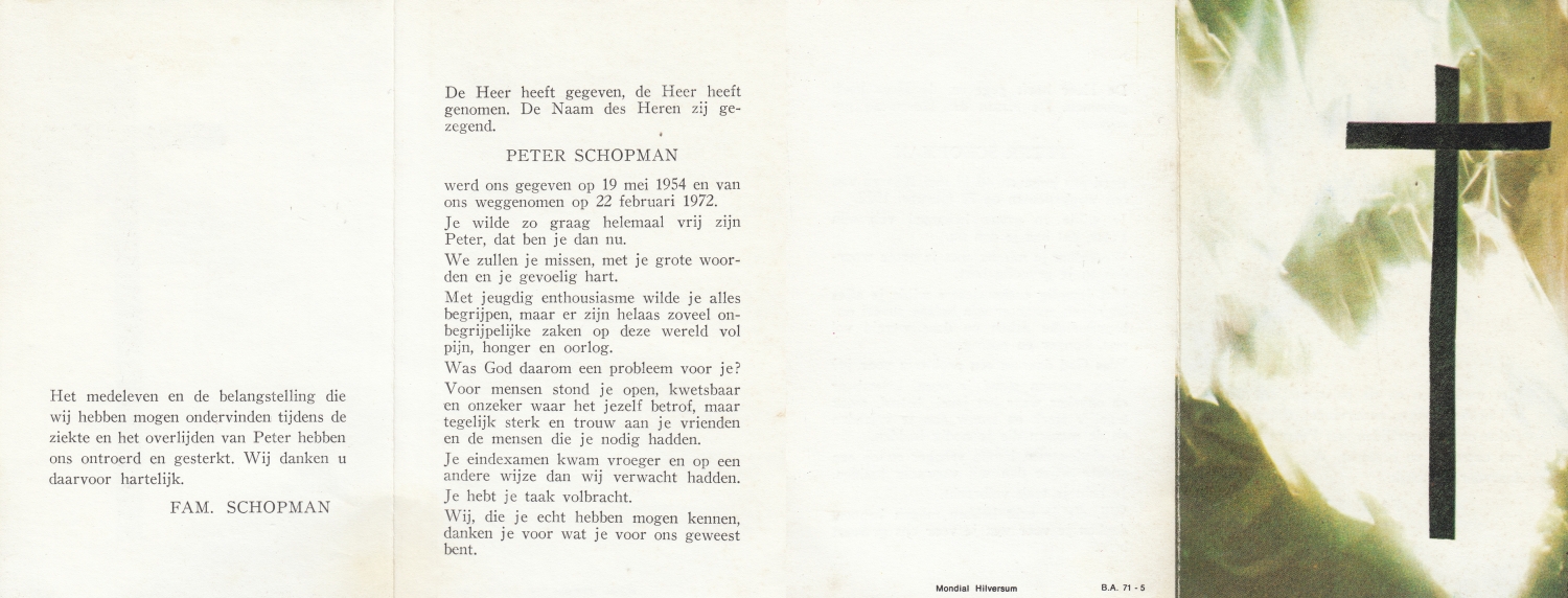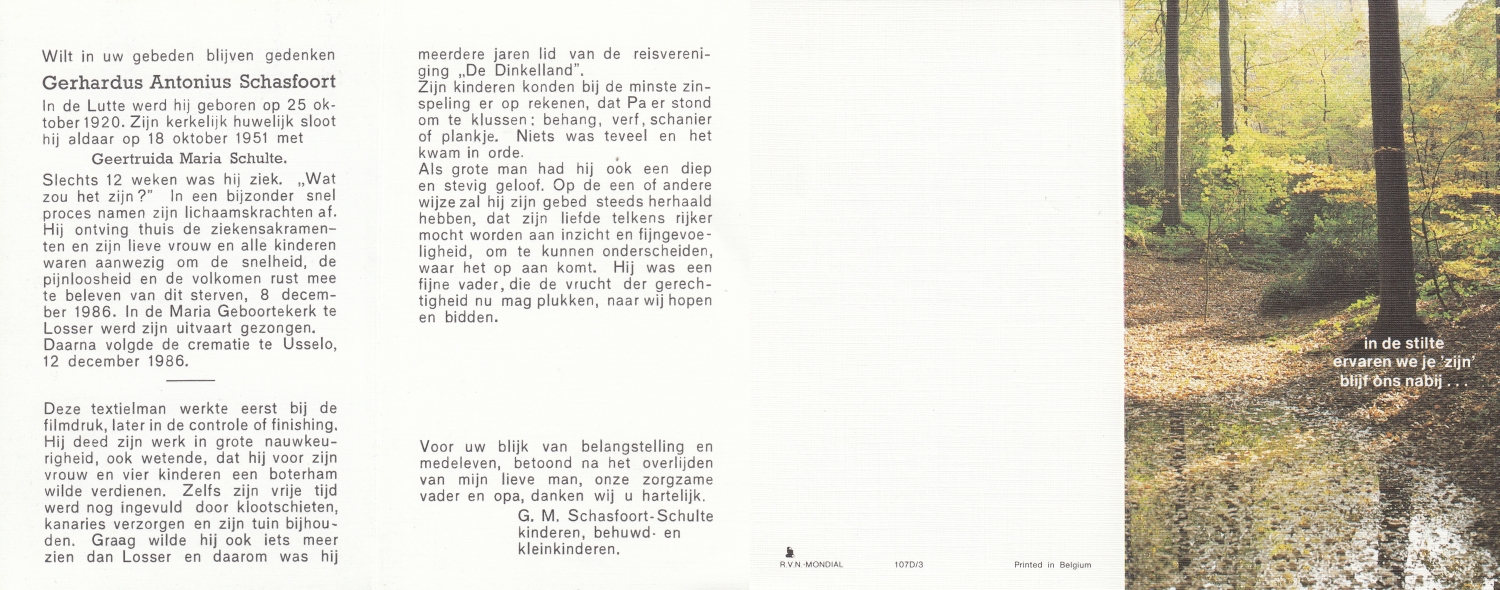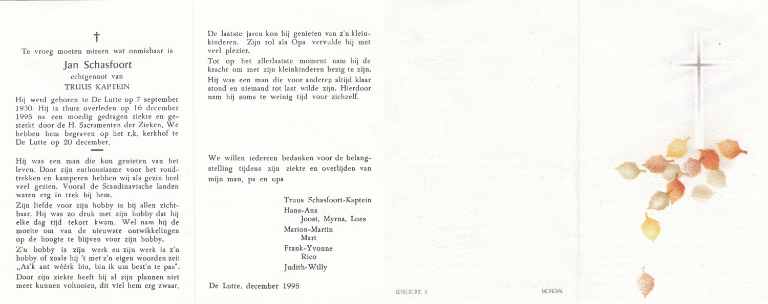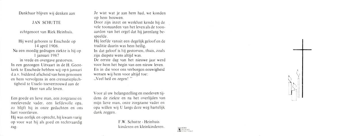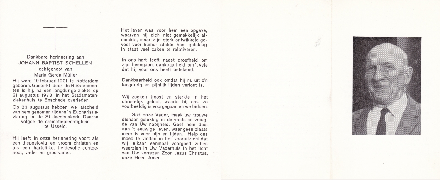 SCHULTEN, Jan, geboren op 3-5-1926, overleden op 1-11-1997 op 71-jarige leeftijd.