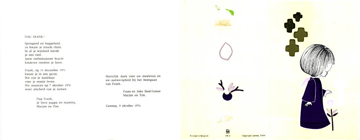 SLOOT, Fien, geboren op 28-3-1922 te Didam, overleden op 20-6-2001 op 79-jarige leeftijd.