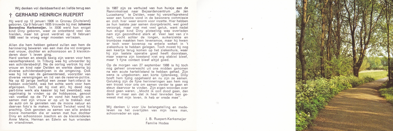 ROUWERS, Willem Bernardus, geboren op 2-10-1917 te Denekamp, overleden op 23-7-1997 te Lonneker op 79-jarige leeftijd.