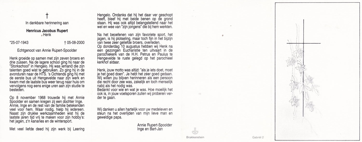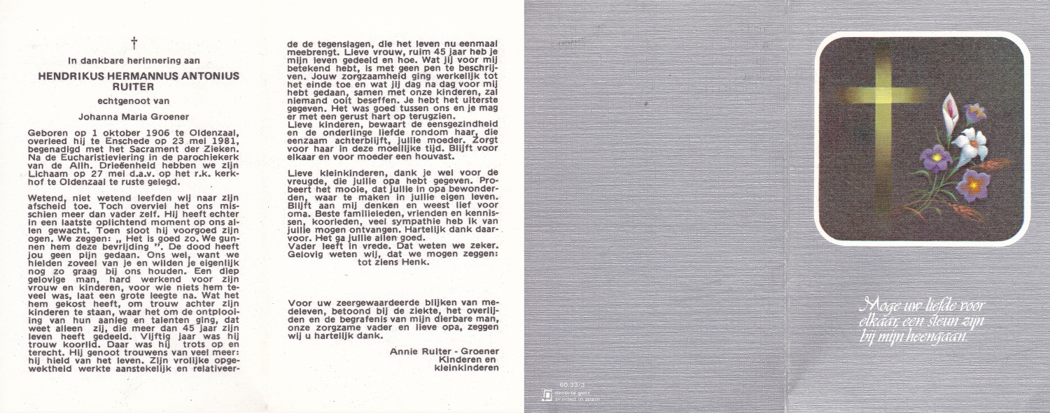 ROUWENHORST, Hendrik Antony, geboren op 27-8-1907 te Haaksbergen, overleden op 2-2-1981 te Haaksbergen op 73-jarige leeftijd, begraven op 8-2-1981 te Haaksbergen.