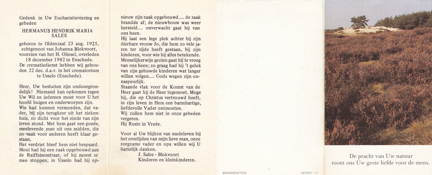 SLOT, Herman Jozef, geboren op 6-7-1922 te Lonneker, overleden op 5-12-1985 te Enschede op 63-jarige leeftijd, gecremeerd op 10-12-1985 te Usselo.
