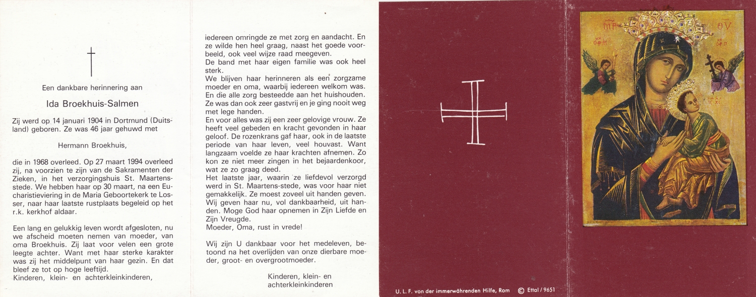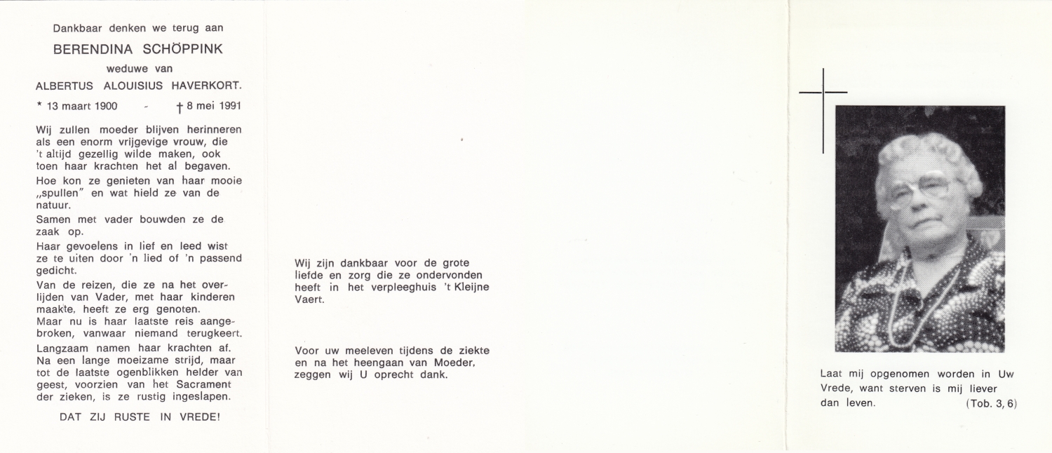 SLOT, Berendina Johanna Maria, geboren op 13-6-1913 te Haaksbergen, overleden op 17-5-1979 te Haaksbergen op 64-jarige leeftijd.
