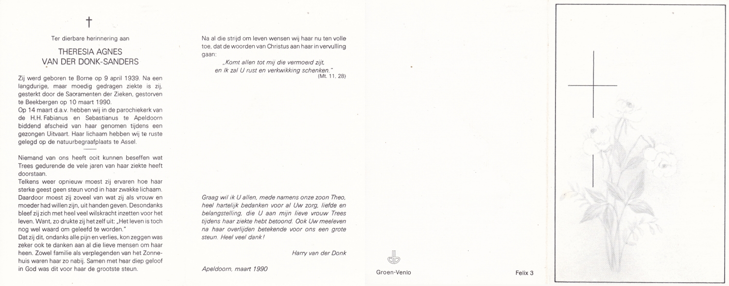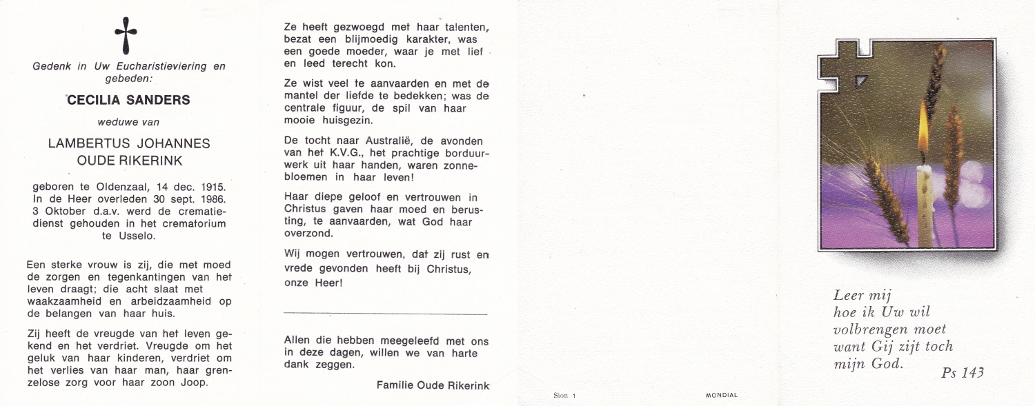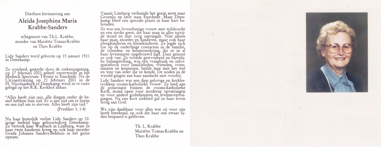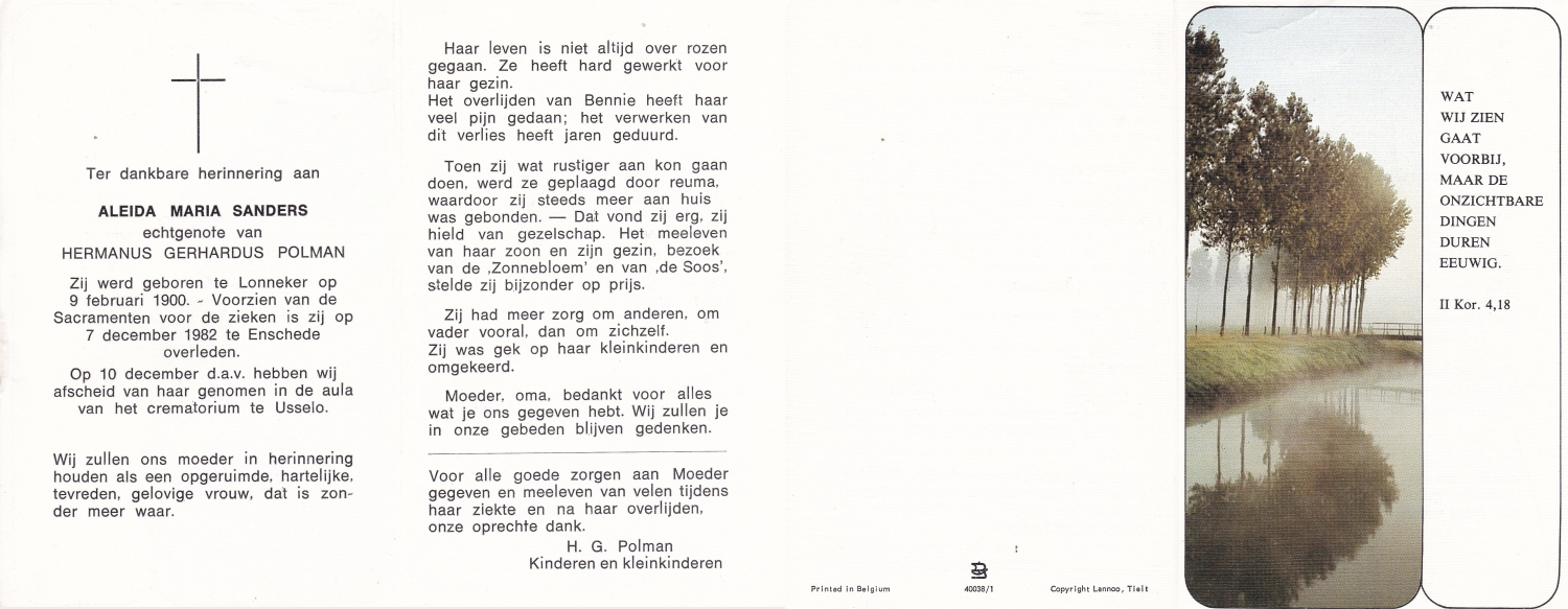 SANDERINK, Anna Aleida, geboren op 9-6-1923 te Losser, overleden op 15-1-1971 te Lonneker op 47-jarige leeftijd.