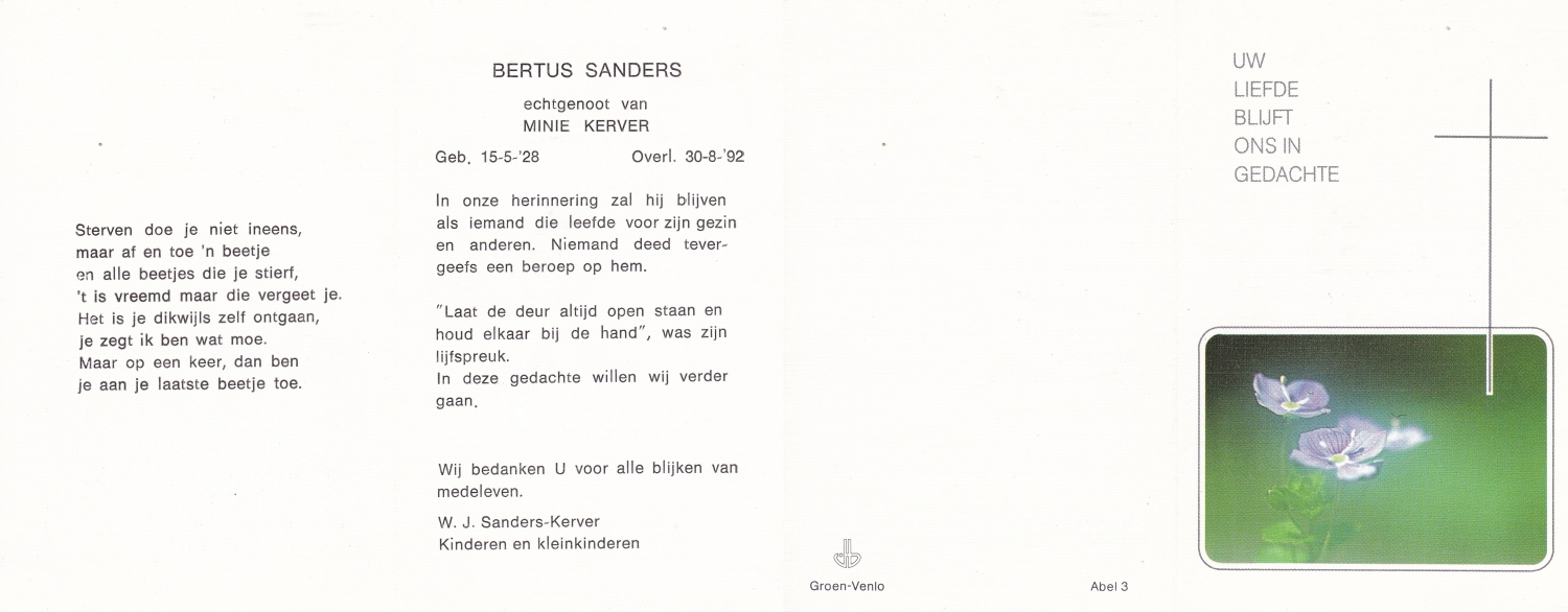 SANDERS, Antonius Lebuines, geboren op 8-6-1913 te Enschede, overleden op 9-10-1972 te Enschede op 59-jarige leeftijd.