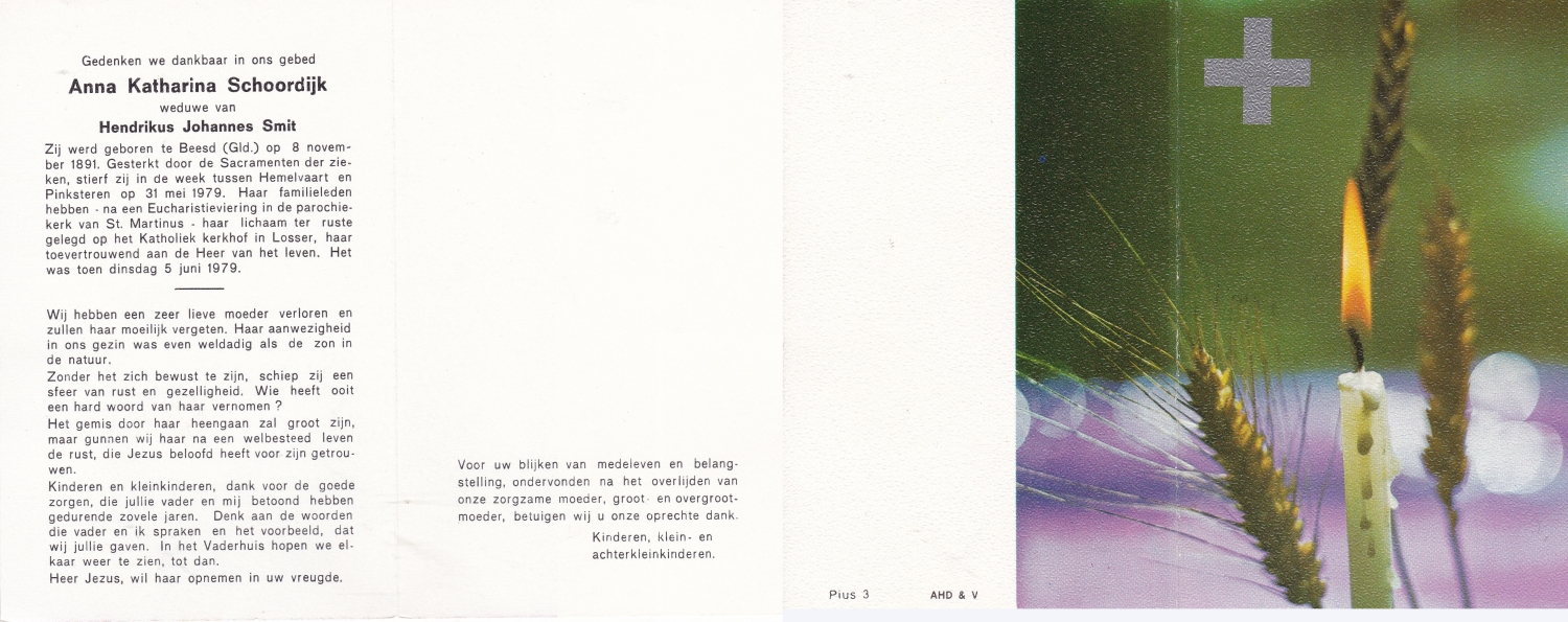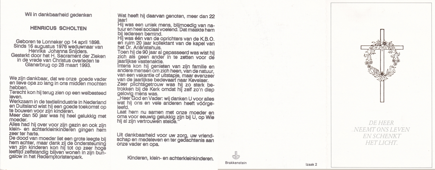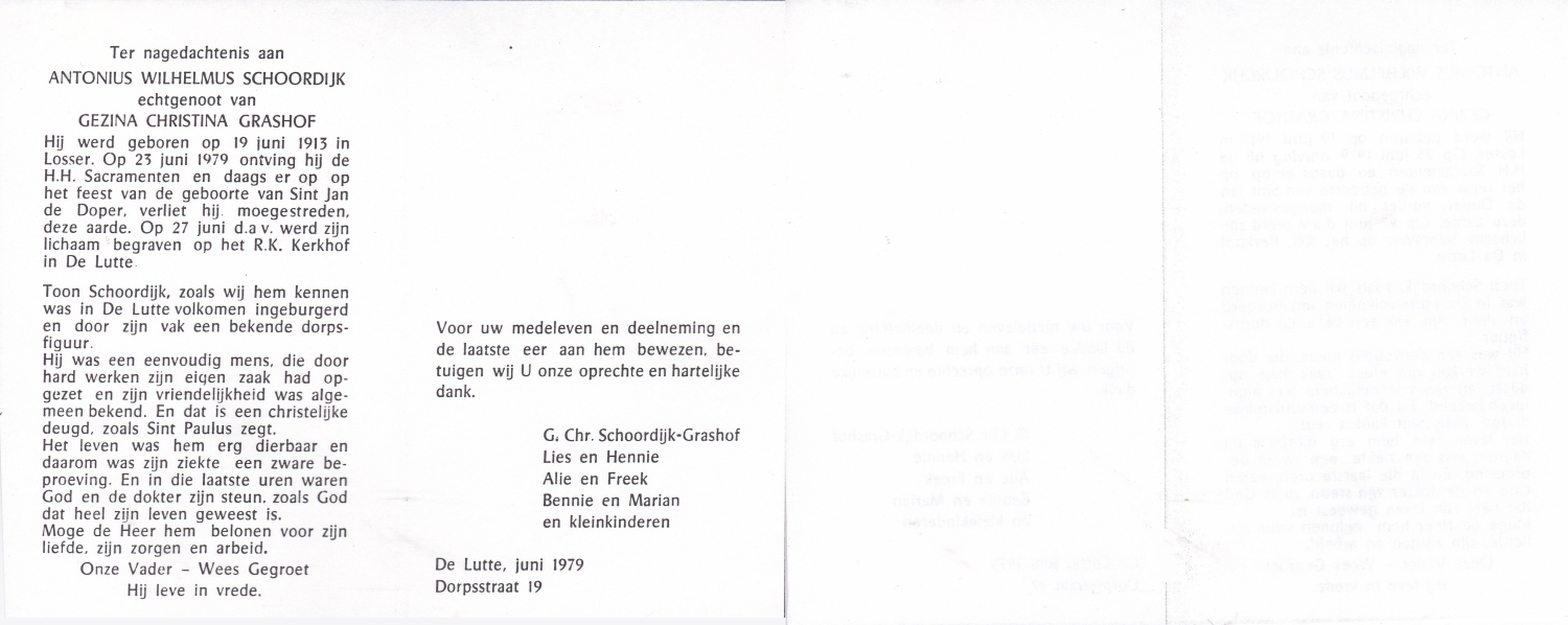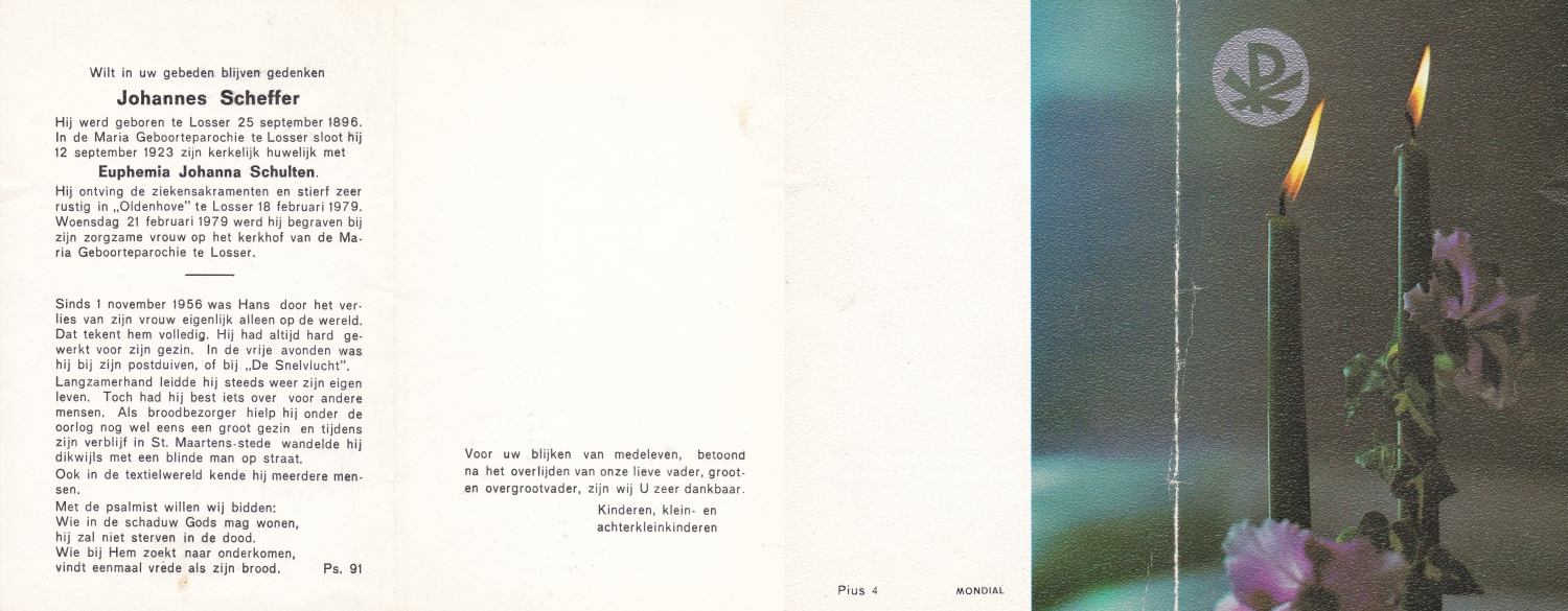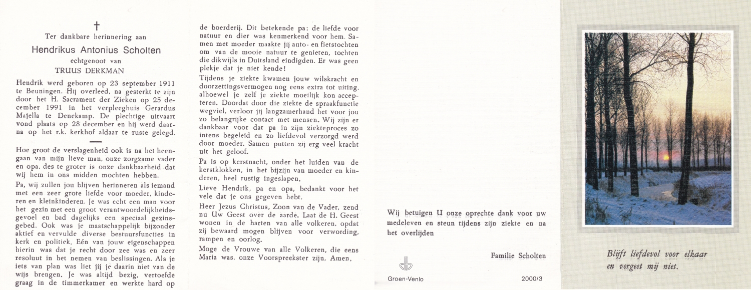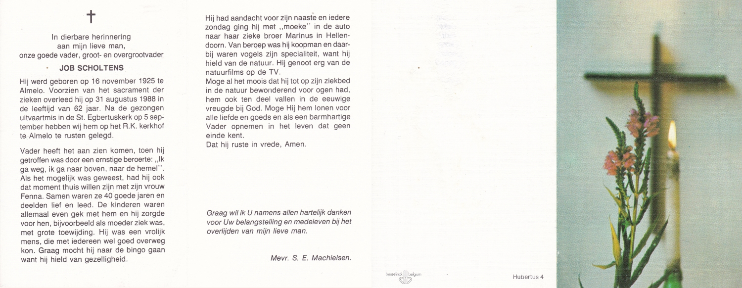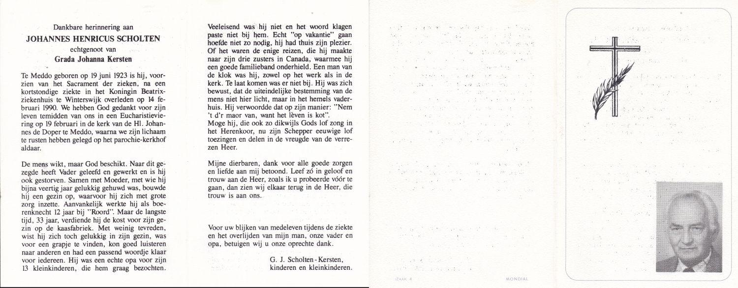 SCHOLTEN, Johannes Hendrikus, geboren op 17-11-1891 te Buurse, overleden op 27-10-1979 te Buurse op 87-jarige leeftijd, begraven op 31-10-1979 te Buurse.