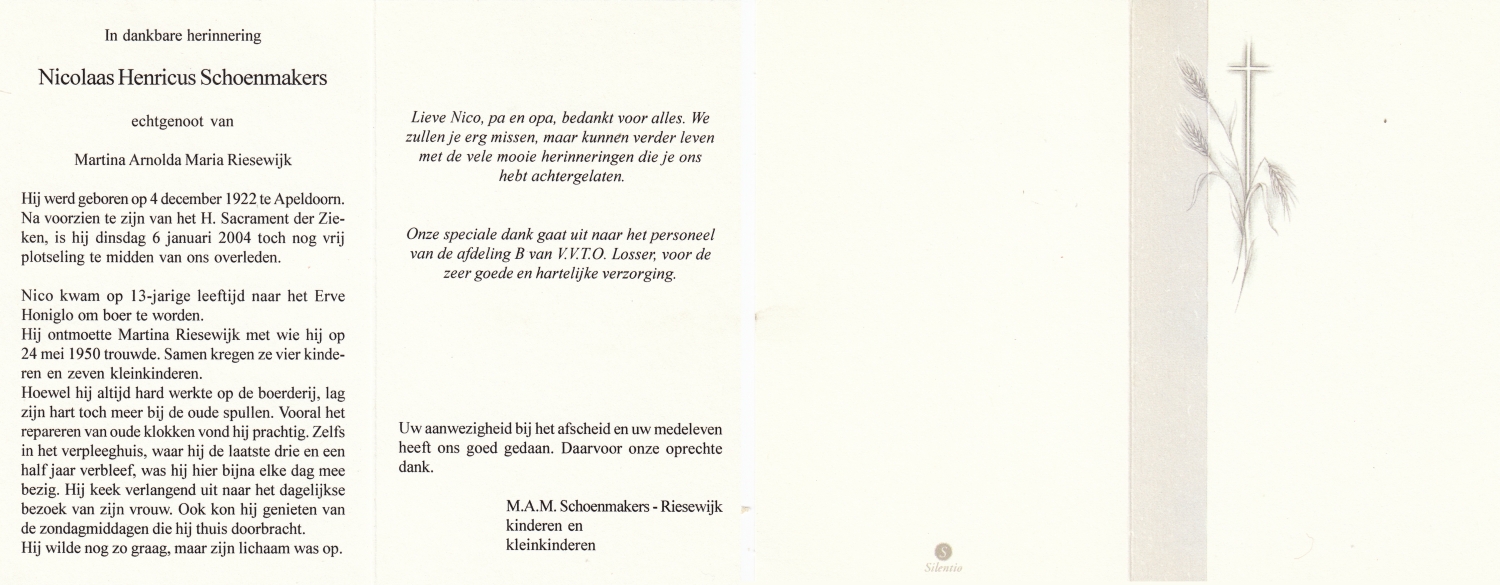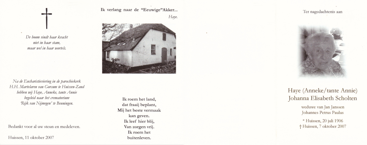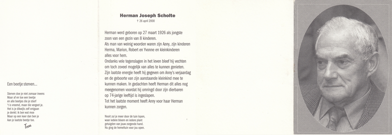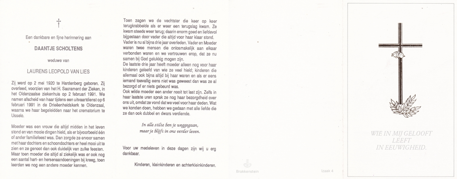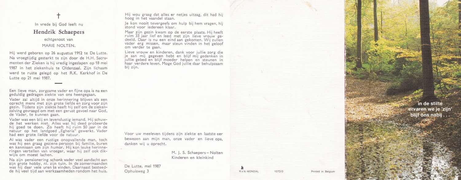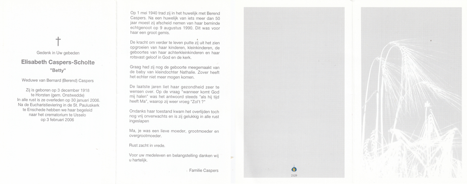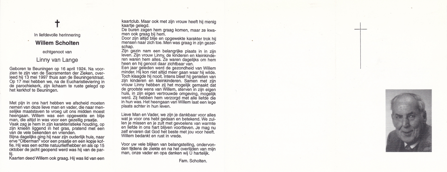 SCHOLTEN, Johannes Hendrikus, geboren op 17-11-1891 te Buurse, overleden op 27-10-1979 te Buurse op 87-jarige leeftijd, begraven op 31-10-1979 te Buurse.