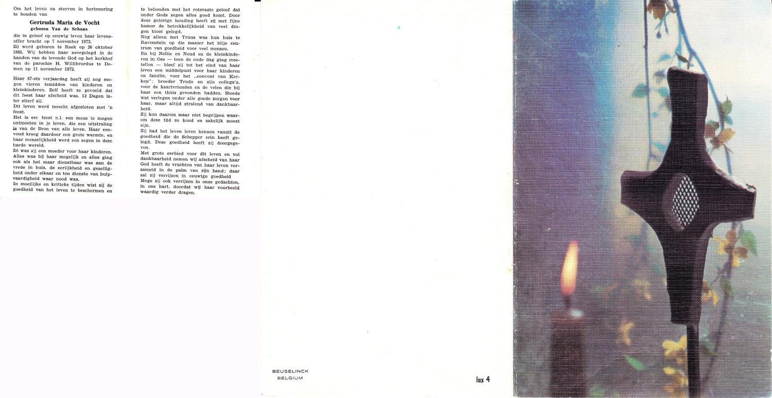 SCHOLTEFLEER, Geertruida, geboren op 06-06-1856, overleden op 2-11-1935 te De Lutte op 79-jarige leeftijd, begraven op 6-11-1935 te De Lutte.