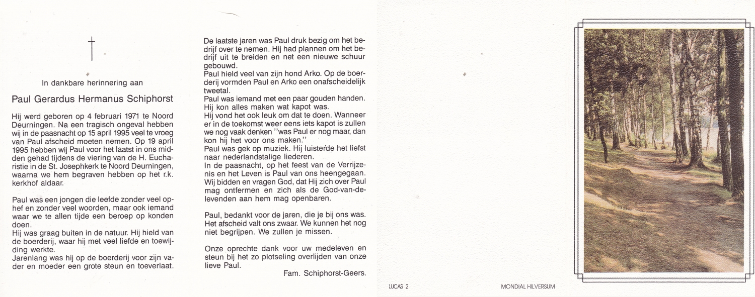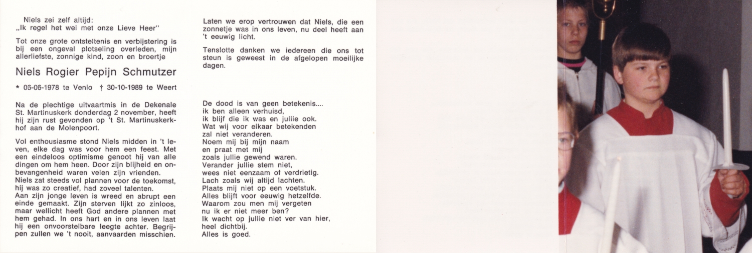 SCHREURS, Marcel Antonius Gerardus, geboren op 14-8-1971 te Voorst, overleden op 18-9-1985 te Enschede op 14-jarige leeftijd, begraven op 23-9-1985 te Enschede.