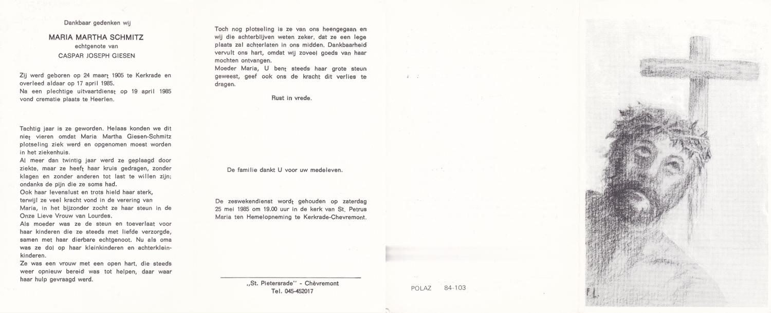SCHWIRTZ, Hermina Johanna Aloysia, geboren op 21-4-1922 te Oldenzaal, overleden op 8-12-1983 op 61-jarige leeftijd, gecremeerd op 12-12-1983 te Usselo.