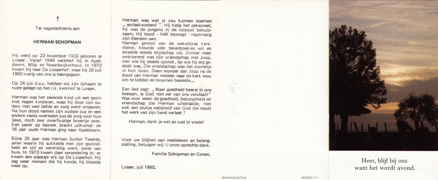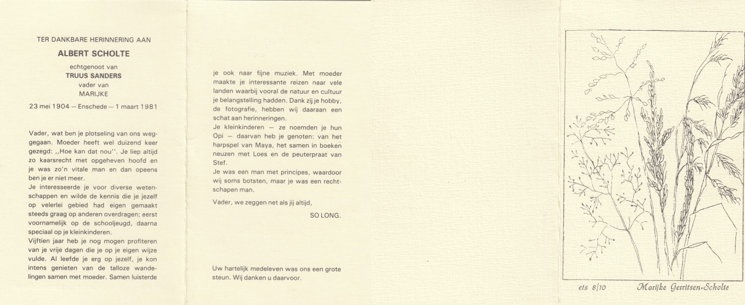 SCHOLTE van MAST, Hermanus Hendrikus, geboren op 13-12-1896 te Rekken, overleden op 27-1-1981 op 84-jarige leeftijd, begraven op 31-1-1981 te Eibergen.