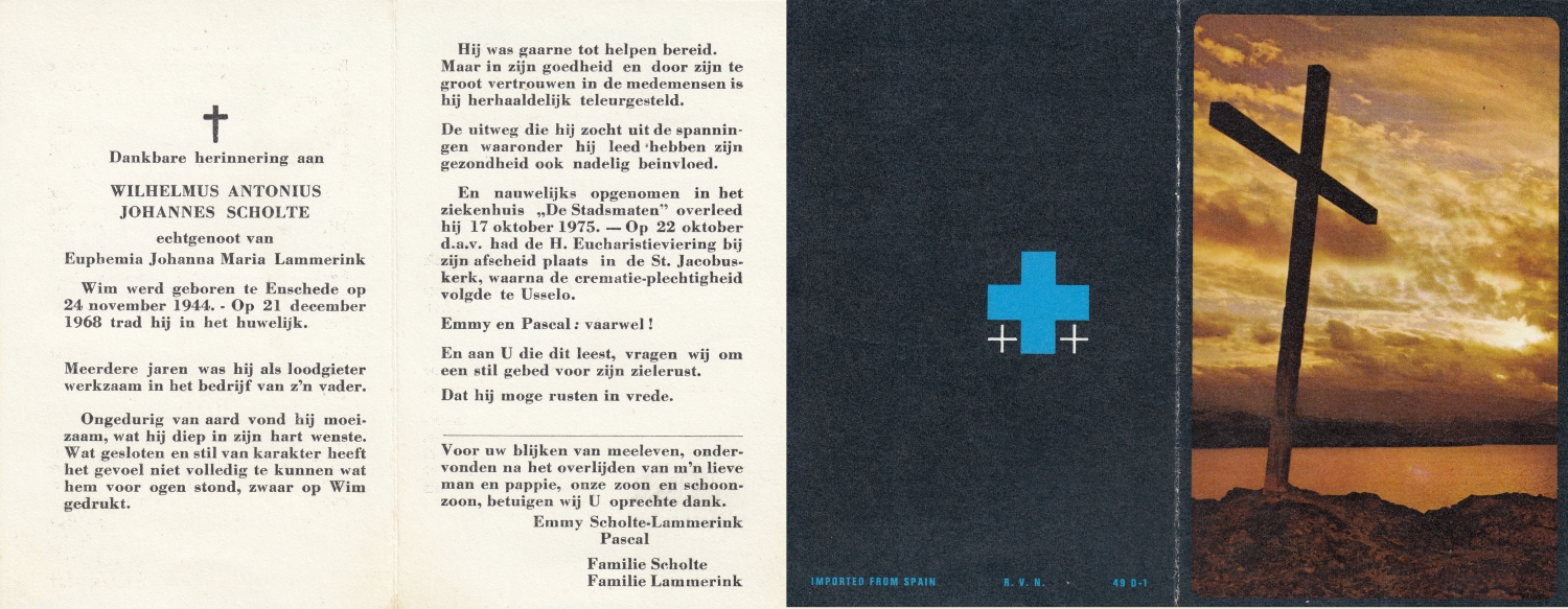 SCHEURINK, Wilhelmus Joseph, geboren op 19-2-1942 te Weerselo, overleden op 10-11-1977 te Weerselo op 35-jarige leeftijd, begraven op 14-11-1977 te Weerselo.