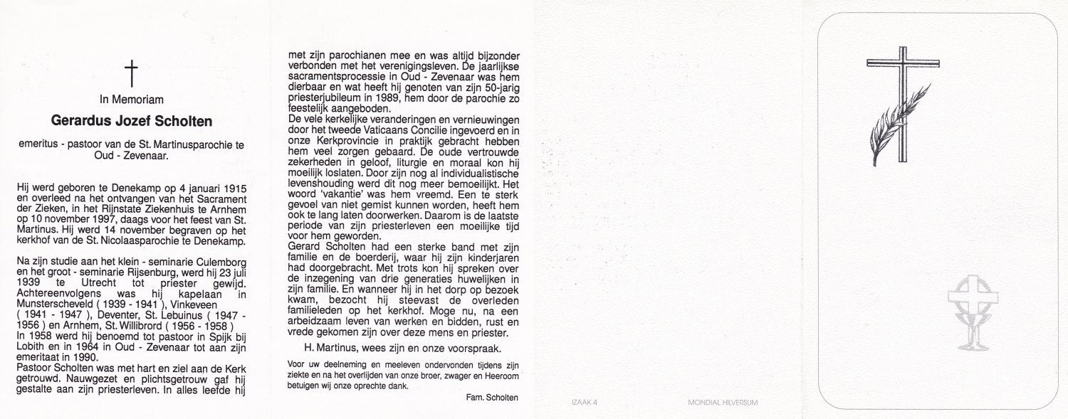 SCHOLTEN, Johannes Hendricus (pastoor), geboren op 20-03-1867 te Delden, Ambt, overleden op 25-10-1939 te Oldenzaal op 72-jarige leeftijd, begraven op 30-10-1939 te Oldenzaal.