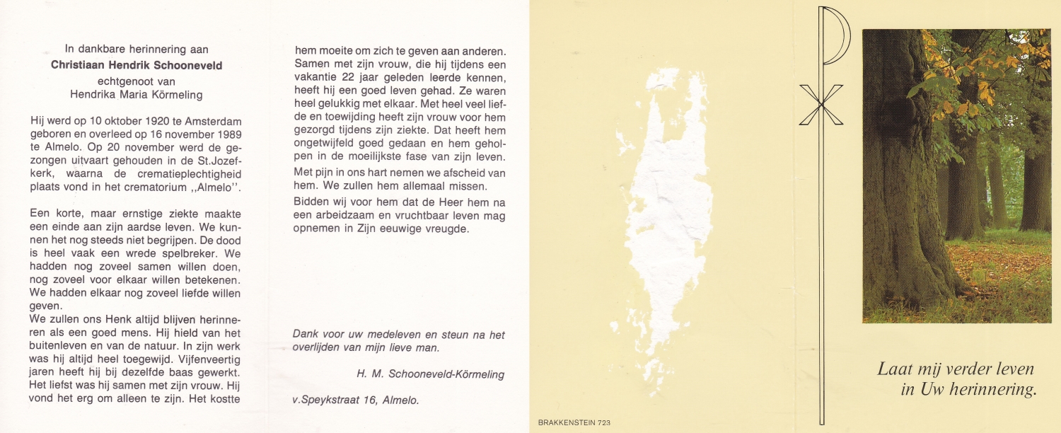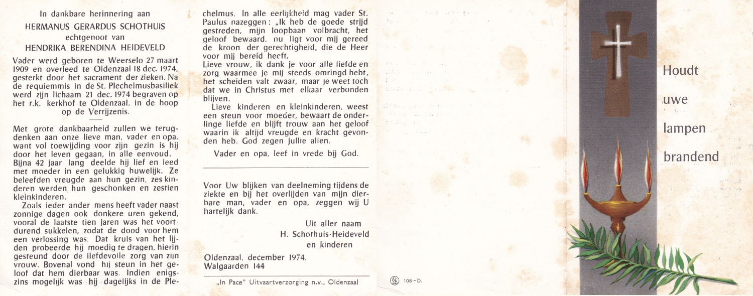 SCHILTKAMP, Hermanus Johannes Hendrikus, geboren op 19-3-1911 te Losser, overleden op 21-10-1974 te Enschede op 63-jarige leeftijd, gecremeerd op 25-10-1974 te Usselo.