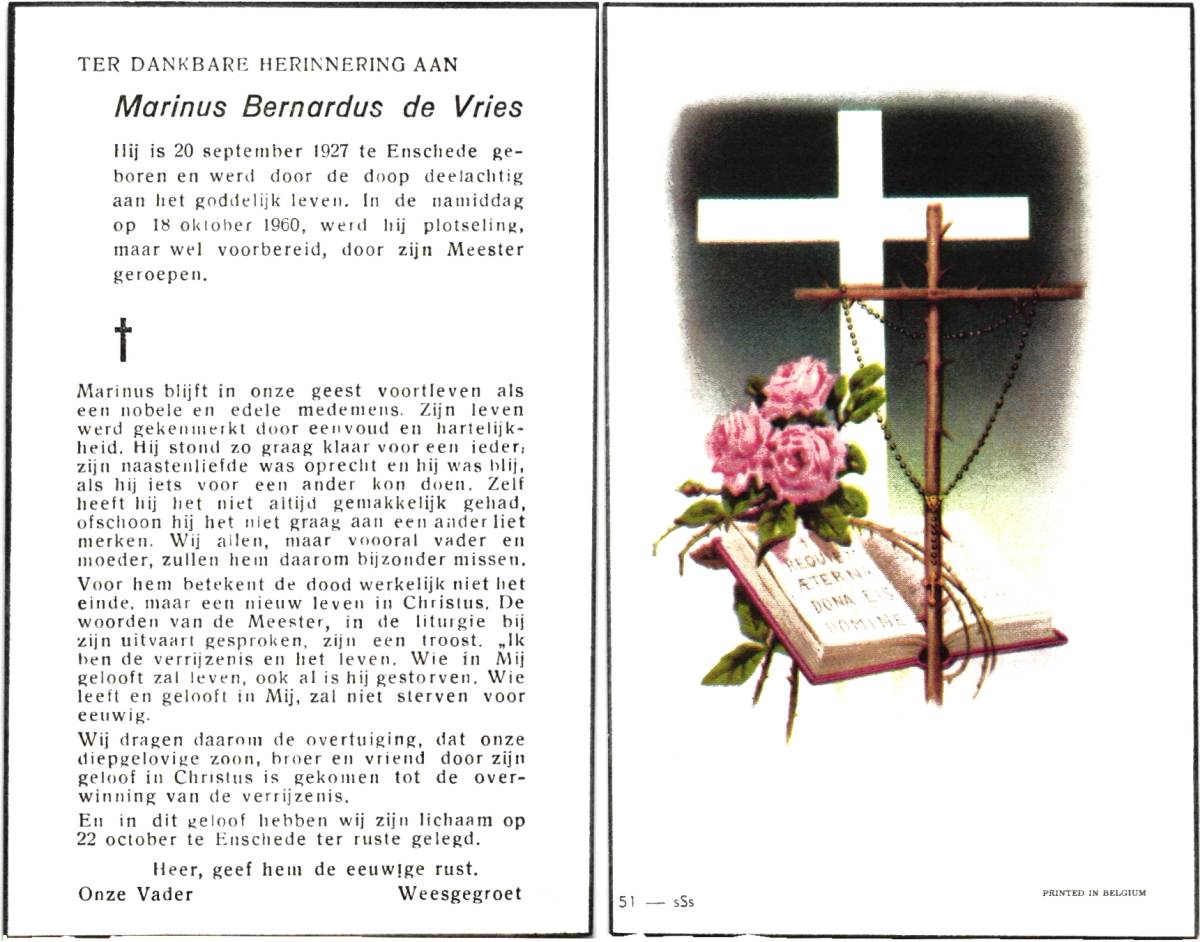 VOSMER, Marinus Gerhardus Albinus, geboren op 1-3-1905 te Enschede, overleden op 24-9-1977 te Enschede op 72-jarige leeftijd, gecremeerd op 28-9-1977 te Usselo.