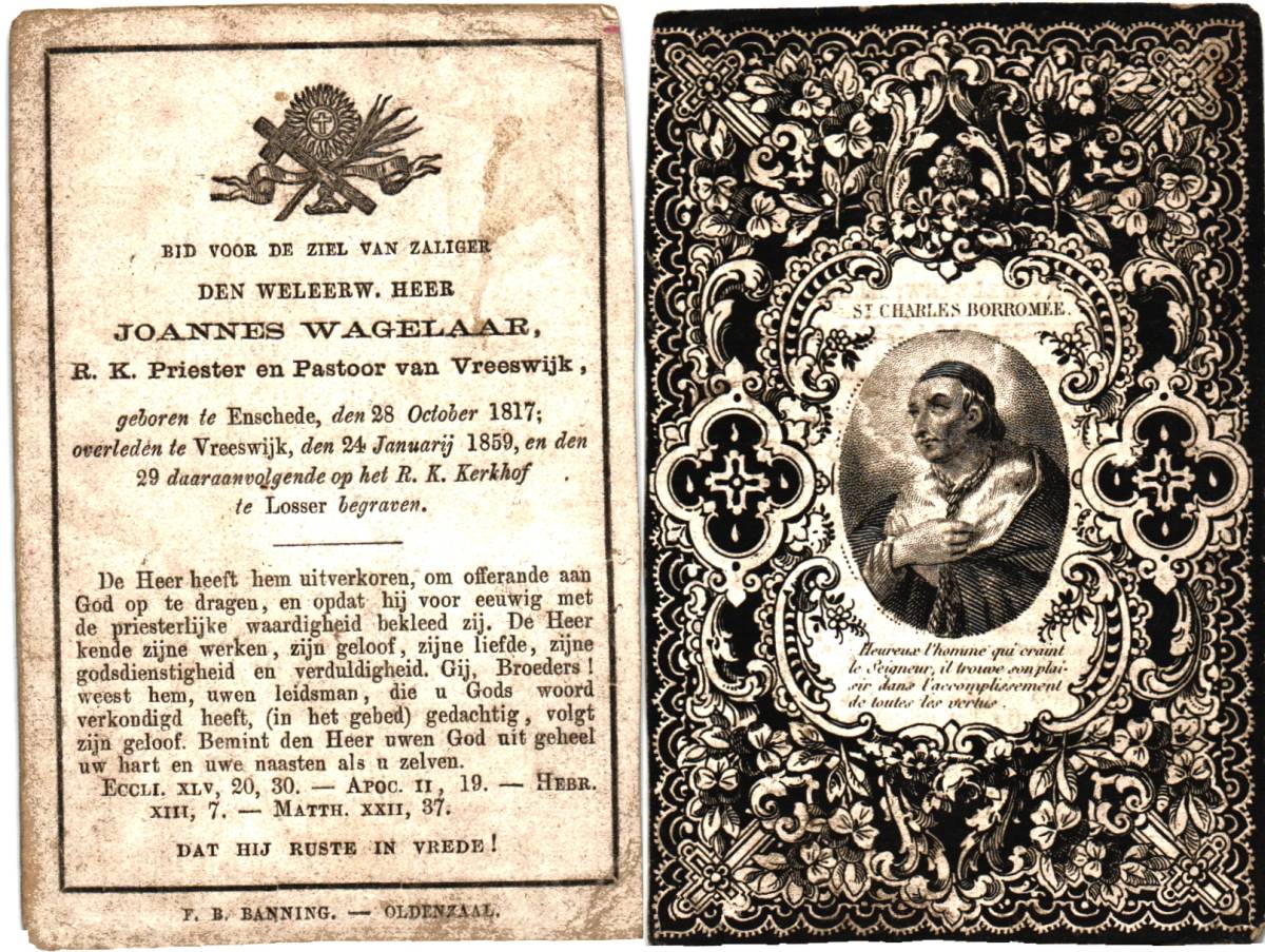 VOGELPOEL (PRIESTER), Antonius Cornelis, geboren op 08-02-1892 te Steenbergen, overleden op 7-4-1969 te Hengelo (O) op 77-jarige leeftijd, begraven op 10-4-1969 te Zenderen.