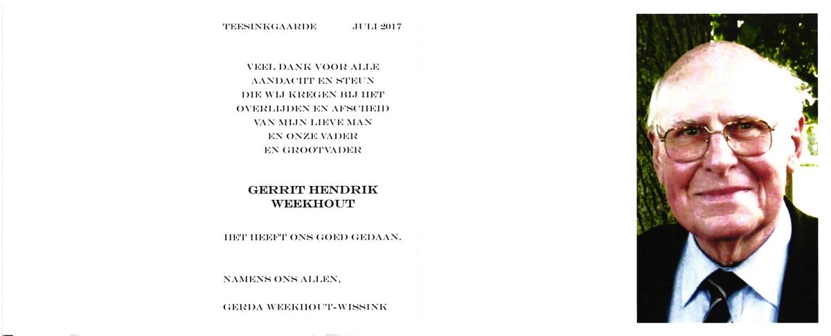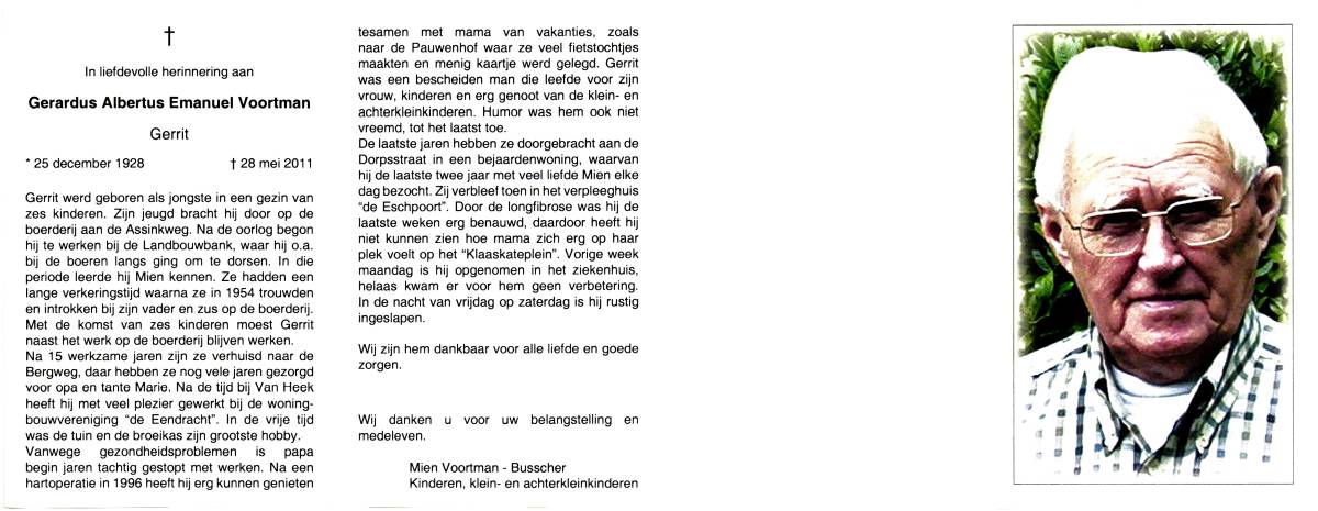 VOERHUIS, Gerrit, geboren op 29-2-1932 te Almelo, overleden op 18-7-1999 te Almelo, ziekenhuis op 67-jarige leeftijd, gecremeerd op 22-7-1999 te Almelo.