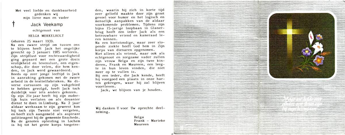VEEKAMP, Jack, geboren op 25-3-1939, overleden op 3-1-1985 op 45-jarige leeftijd.